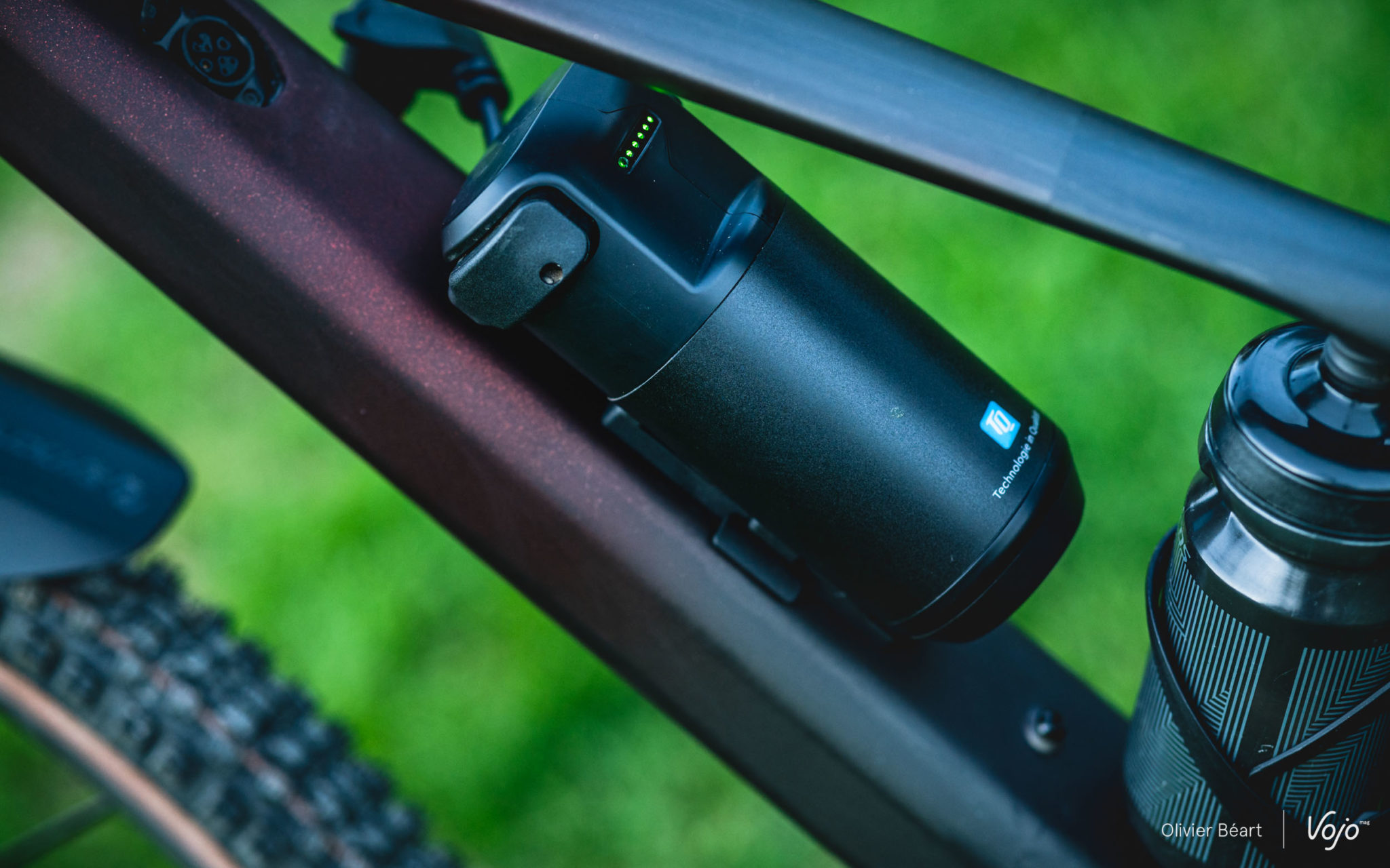 Un range extender est également prévu. La base est connue puisque c’est celui de TQ mais Scott a rajouté sa petite patte en développant une interface spécifique pour la fixation sur le cadre, afin de réduire au maximum l’encombrement. Il a une capacité de 160 Wh et permet d’ajouter quasiment 50% d’autonomie pour un poids de moins de 1 kg. De manière assez classique, il prend place dans un emplacement de porte-bidon. Spécificité très intéressante, l’architecture du Lumen avec son amortisseur intégré lui permet d’accueillir deux porte-bidons.