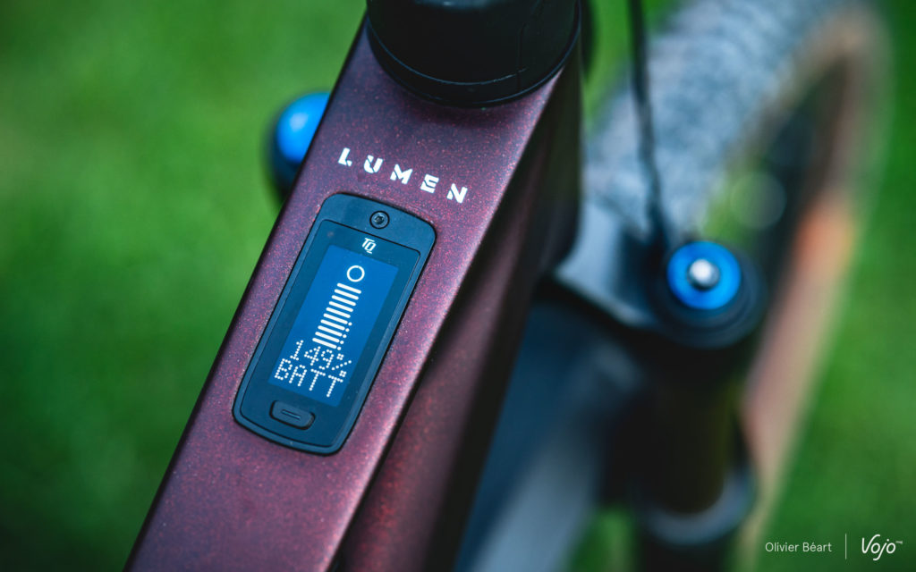 Reste un point important à aborder : l’autonomie. Avec la seule batterie de 360Wh, en roulant de manière intense et sportive avec l’assistance positionnée la plupart du temps en mode intermédiaire, on peut sans souci arriver à 1500m de d+ sur terrain bien vallonné et technique avec de nombreuses relances. Un très joli score, qu’on doit non seulement au côté plutôt frugal du moteur TQ, mais aussi au rendement du châssis du Lumen qui limite la consommation d’énergie et qui permet sans souci de pédaler régulièrement sans assistance, sans que cela soit perçu comme une contrainte. A ce niveau, il fait encore mieux que l’Orbea Rise, pourtant déjà une belle référence à ce niveau, et il permet un pédalage encore plus facile sans assistance, ce qui permet de compenser son autonomie qui nous a paru naturellement un poil moins importante que celle du Rise.