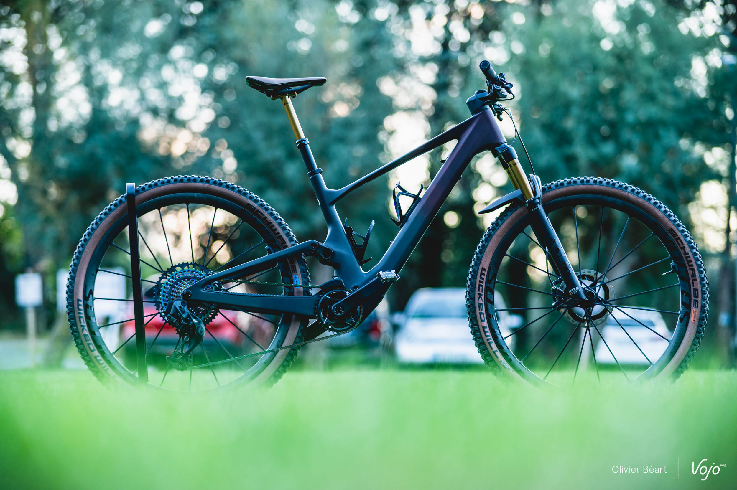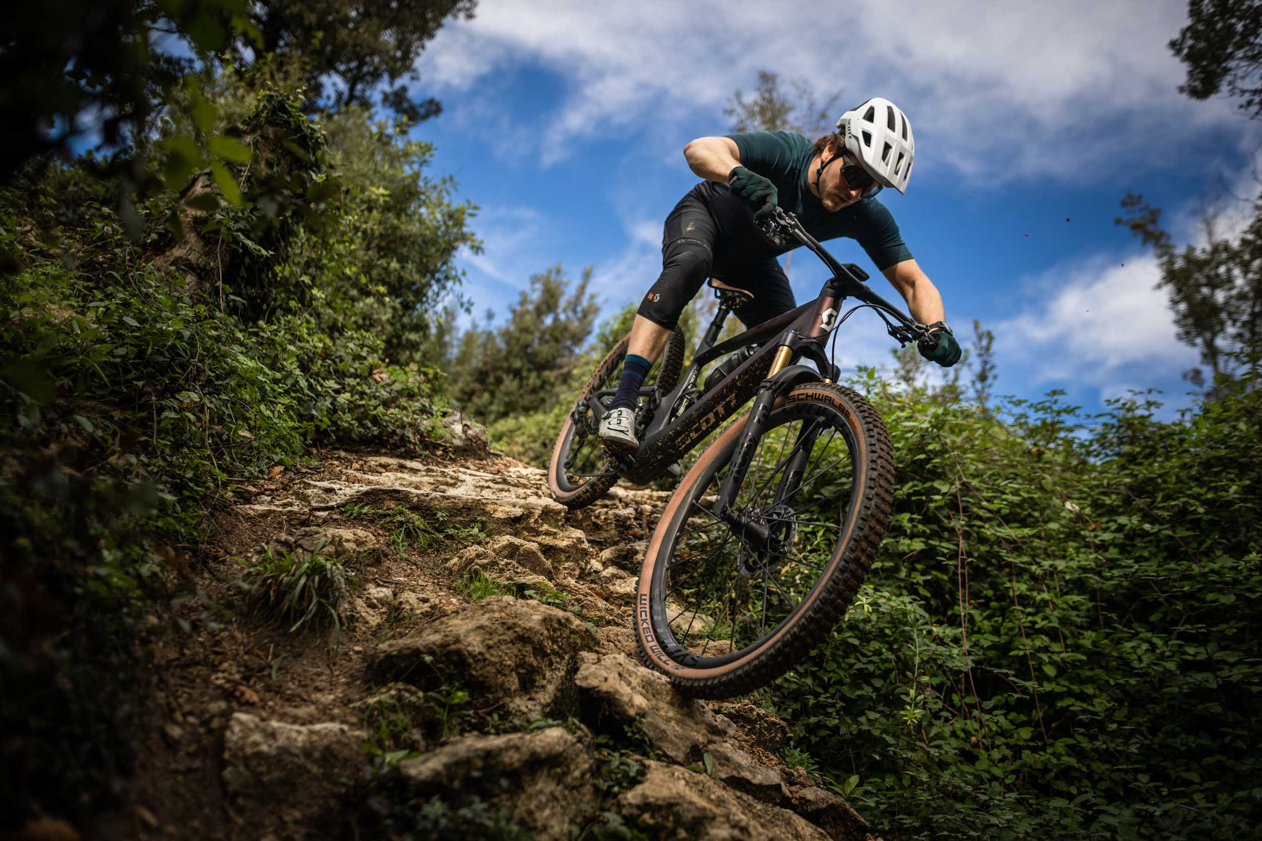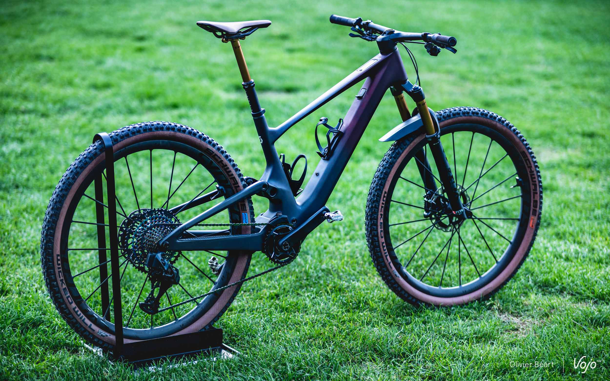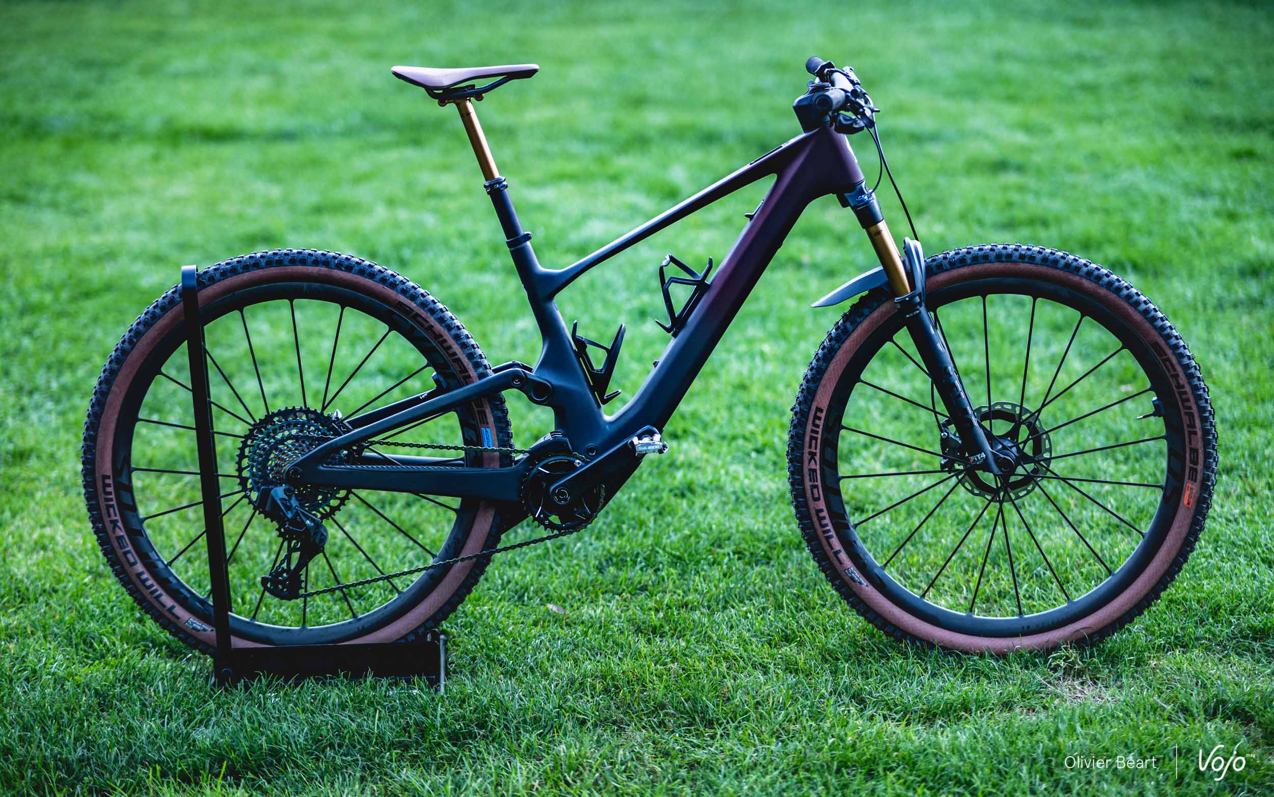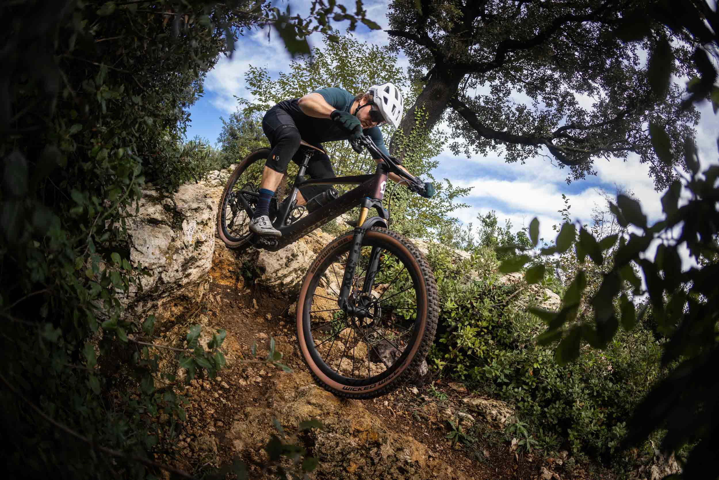 Restera juste à changer les pneus, car les Schwalbe Wicked Will brident aussi le vélo, principalement au niveau de l’avant à cause d’un manque flagrant de grip latéral. Et leur solidité est aussi très relative dans cette carcasse Super Race Transparent Wall (sans noir de carbone dans les flancs, qui participe à la rigidité et à la robustesse), la plus légère disponible au catalogue de l’équipementier allemand.