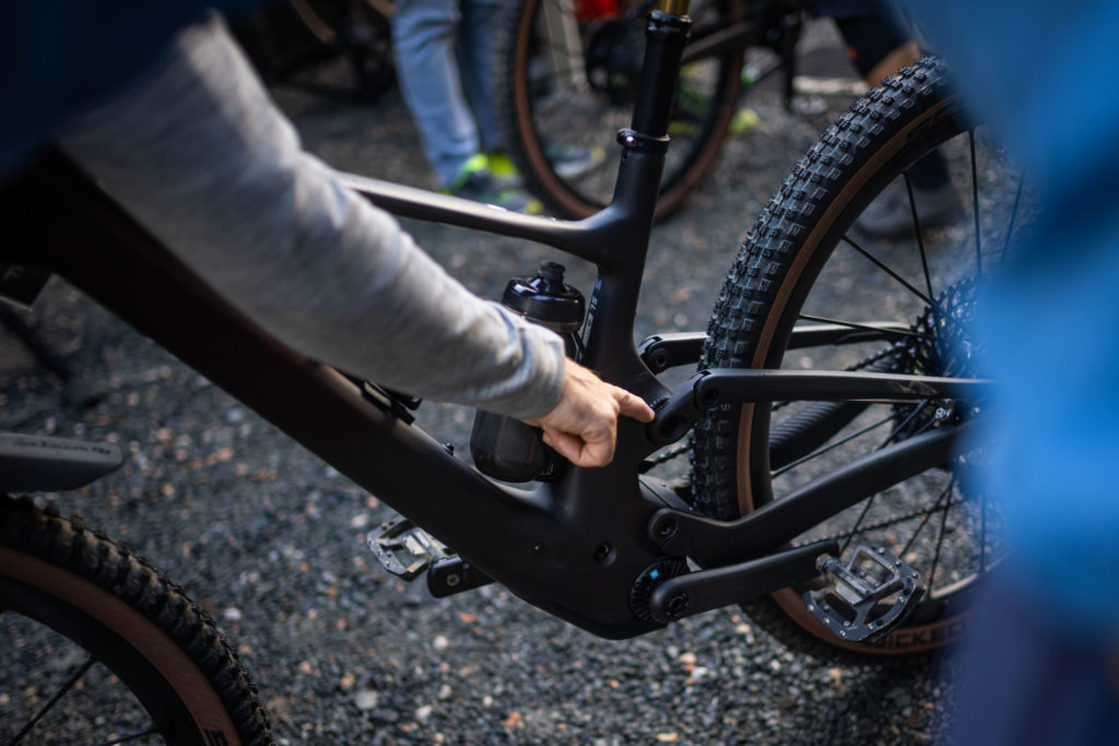 Il y avait aussi déjà presque assez de place dans la « boîte » interne qui accueille l’amortisseur du Spark, pour que le moteur lui-même passe presque inaperçu et que toute la connectique soit à la fois bien cachée et très facilement accessible par la trappe présente sous le boîtier de pédalier.