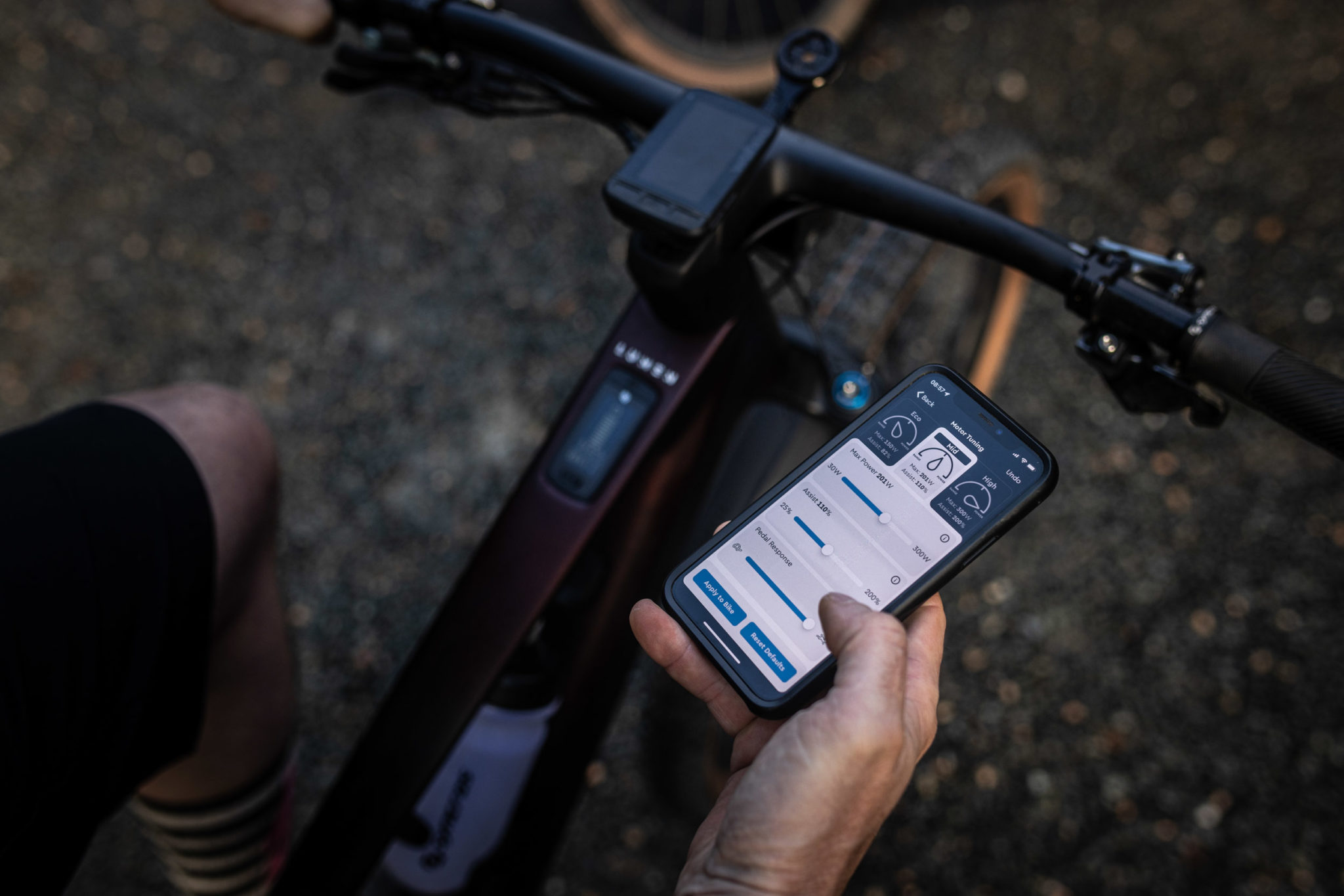 Pour en terminer avec la partie motorisation, signalons que l’écran de contrôle est celui proposé par TQ, assez basique dans son affichage mais clair et lisible malgré un positionnement sur le tube supérieur pour des raisons d’intégration esthétique ; et la commande au guidon se veut très minimaliste afin de bien s’insérer sur un poste de pilotage déjà bien chargé. Mais malgré sa petite taille, nous avons trouvé cette dernière très agréable et pratique à manipuler. L’application TQ permet également de customiser chaque mode d’assistance, mais les réglages de base sont déjà bien calibrés et dans le cadre de ce premier essai, nous les avons conservés tels quels.