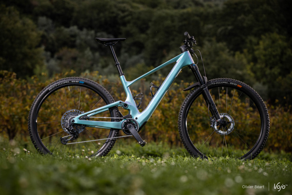 Du côté du châssis, les roues de 29 pouces se sont imposées d’office vu le programme XC/trail du vélo. La compacité du moteur TQ n’a pas imposé de concession à ce niveau et on note juste que les bases sont 12,5 mm plus longues que sur le Spark. Pas de quoi vraiment changer la personnalité du vélo car, avec 450 mm, on reste sur des valeurs très correctes pour un e-bike, et cela peut avoir du sens d’allonger un peu l’arrière pour offrir plus de grip et de facilité en côte.