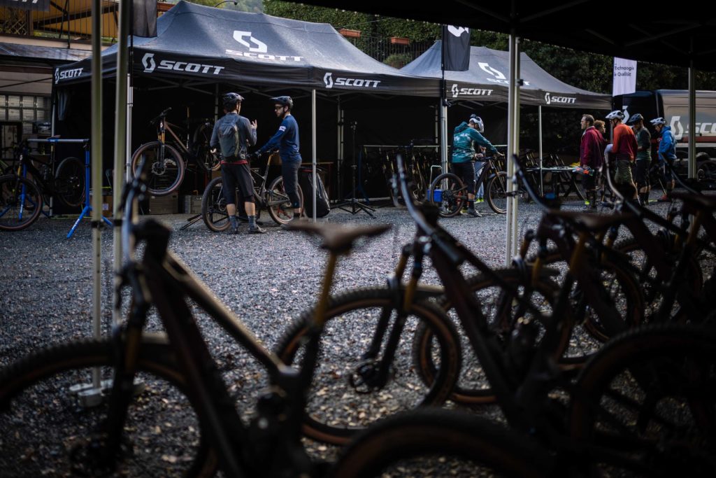 Le haut de gamme est assuré par le très exclusif Scott Lumen SL avec un montage Sram XX1 Eagle AXS, suspensions Fox Factory et roues Syncros Silverton SL full carbone. C’est le modèle que nous avons essayé lors de la présentation. Et, même si c’est toujours sympa de rouler avec des vélos de rêve, nous regrettons ce choix de la part de Scott. D’une part parce qu’il s’agit d’une version au prix stratosphérique de 16 000€ dont la diffusion sera limitée à quelques centaines d’exemplaires, et d’autre part parce que certains choix d’équipements sont plus démonstratifs que pertinents (voir notre test terrain ci-dessous pour mieux comprendre).