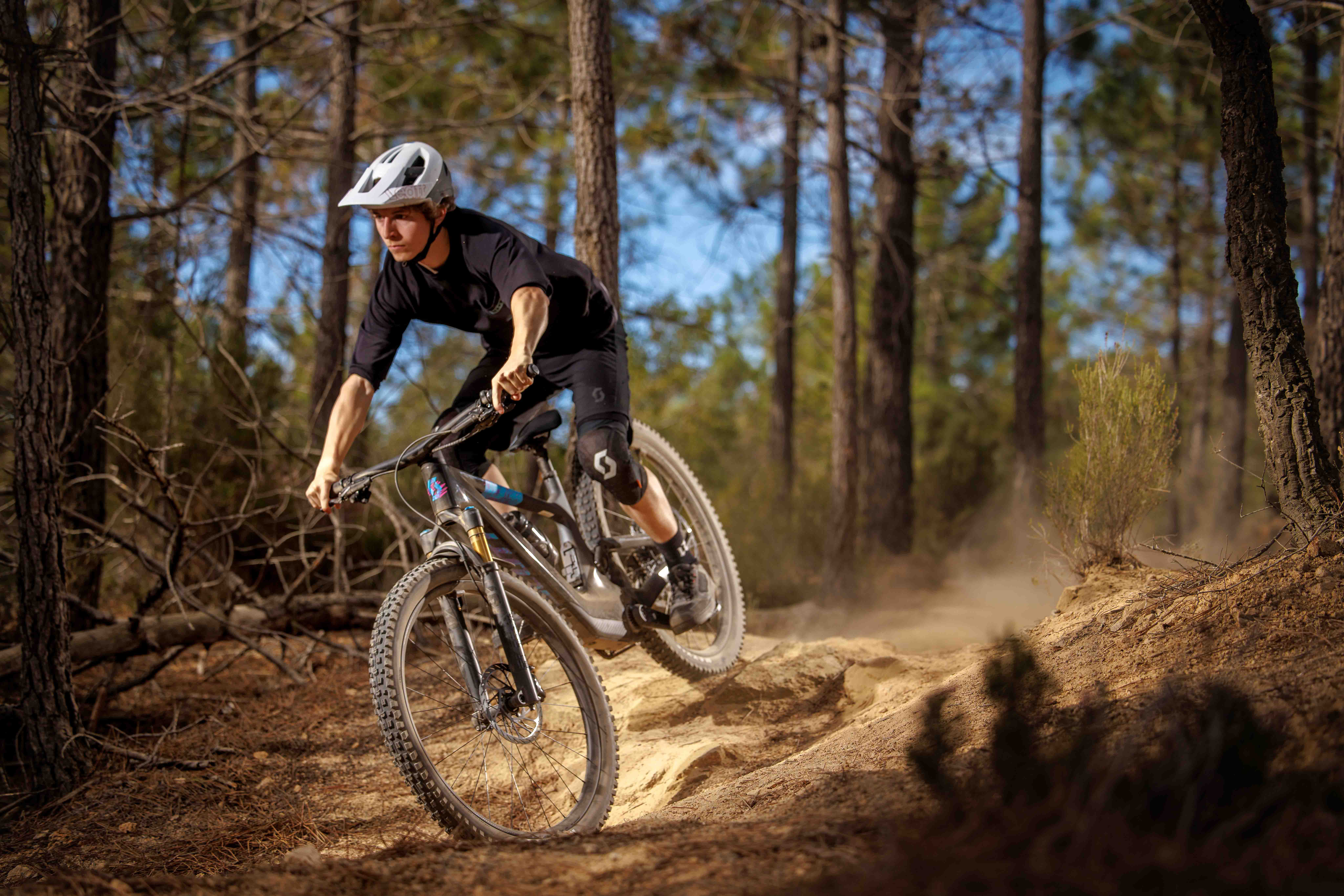 Pour notre mètre 77, c’est un taille M que Scott nous a conseillé et sur lequel nous avons facilement trouvé nos repères. Nous avons par contre rapidement modifié la configuration de l’angle de direction pour le réglage intermédiaire, à savoir 64,5°. Du côté des suspensions, notre fourche était gonflée à 65 psi et l’amortisseur sur un poil plus de 30% de sag pour un pilote affichant 63 kg.