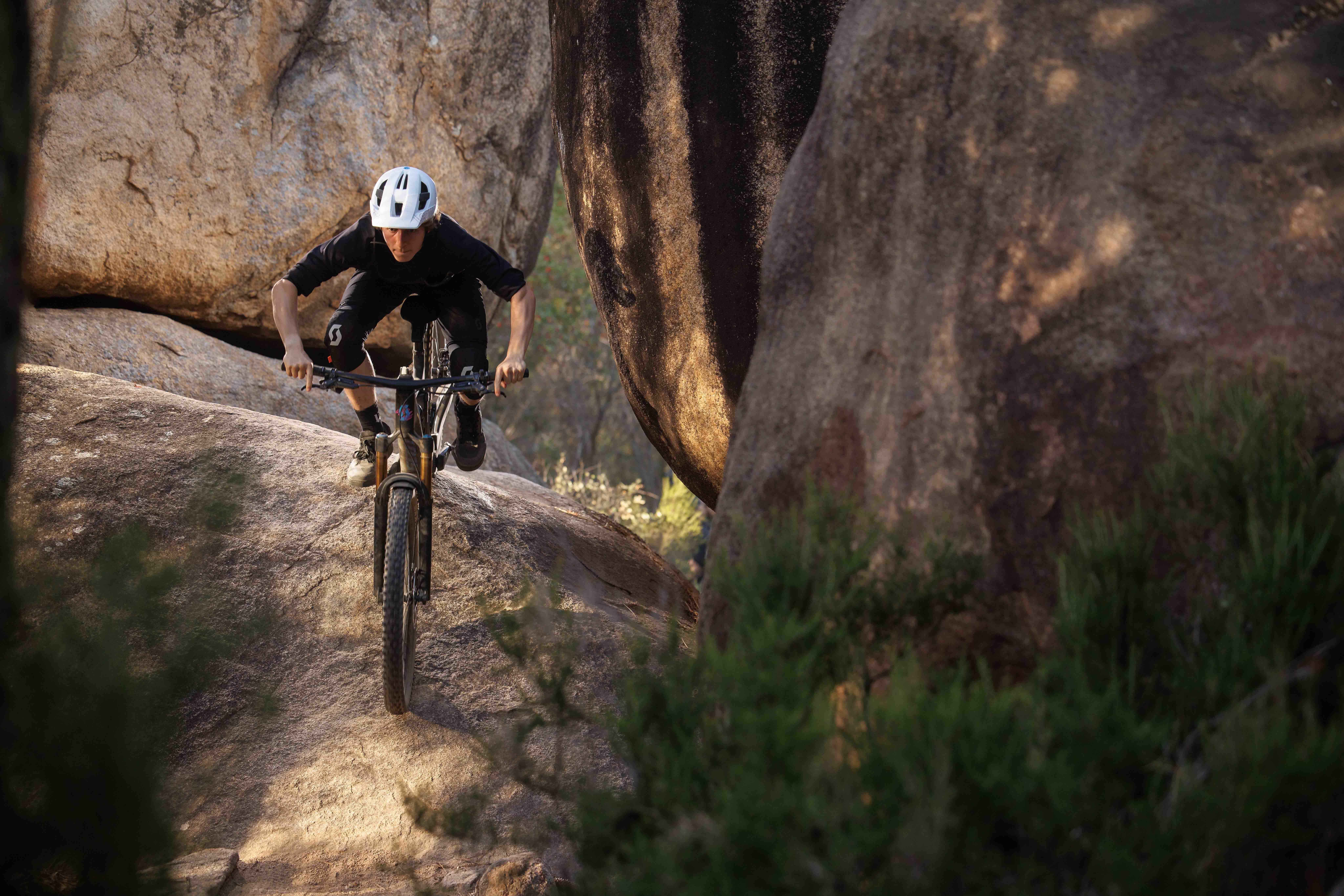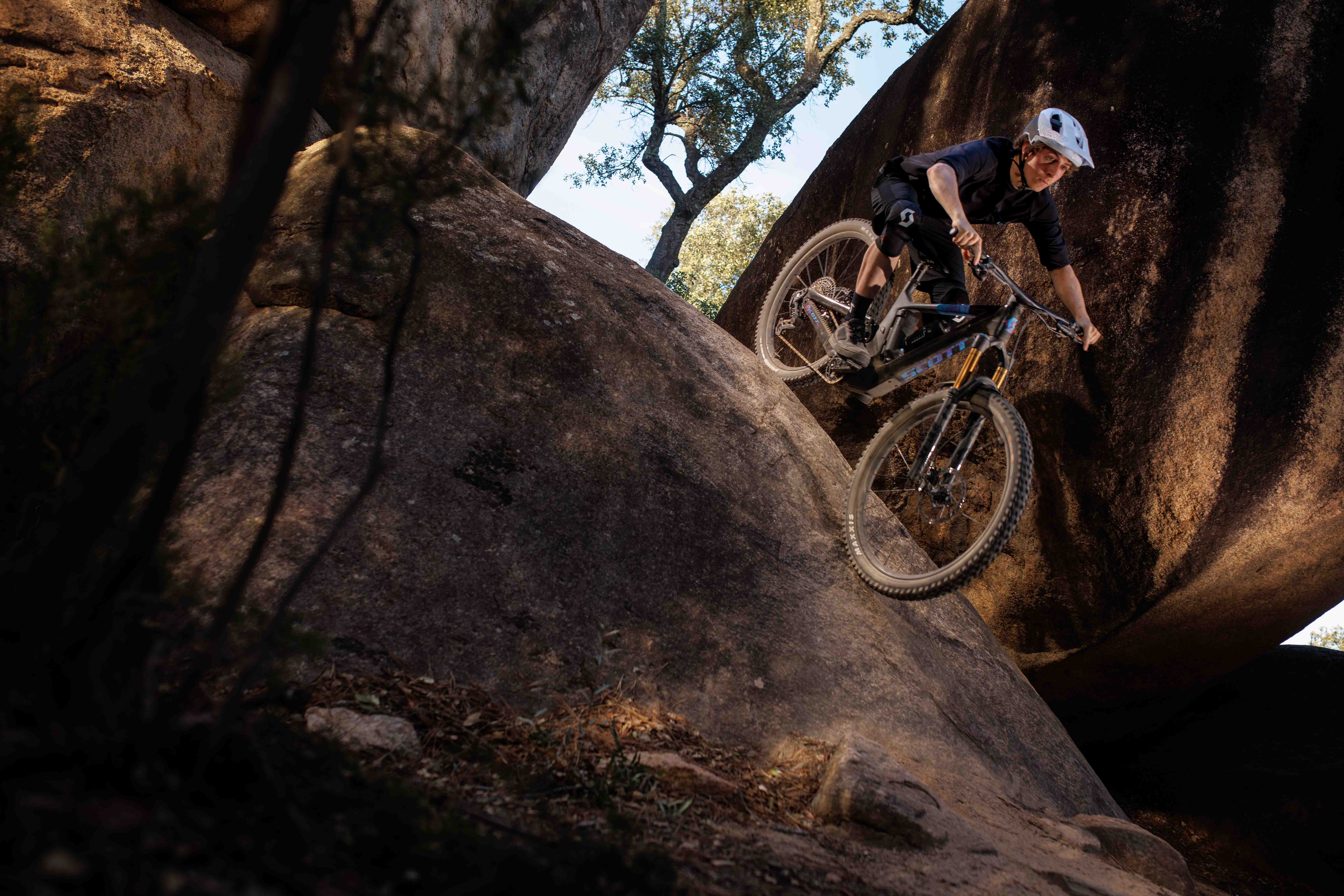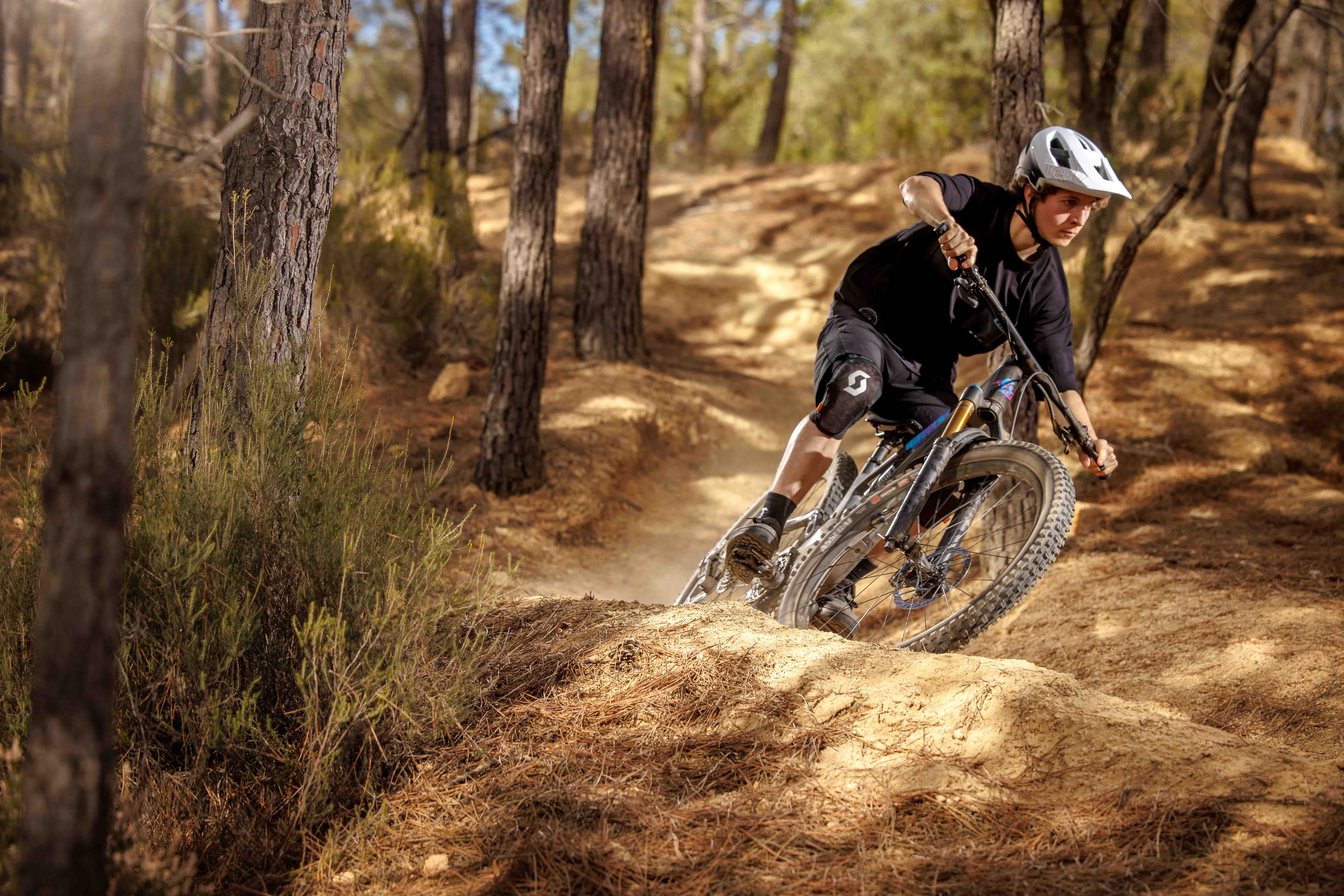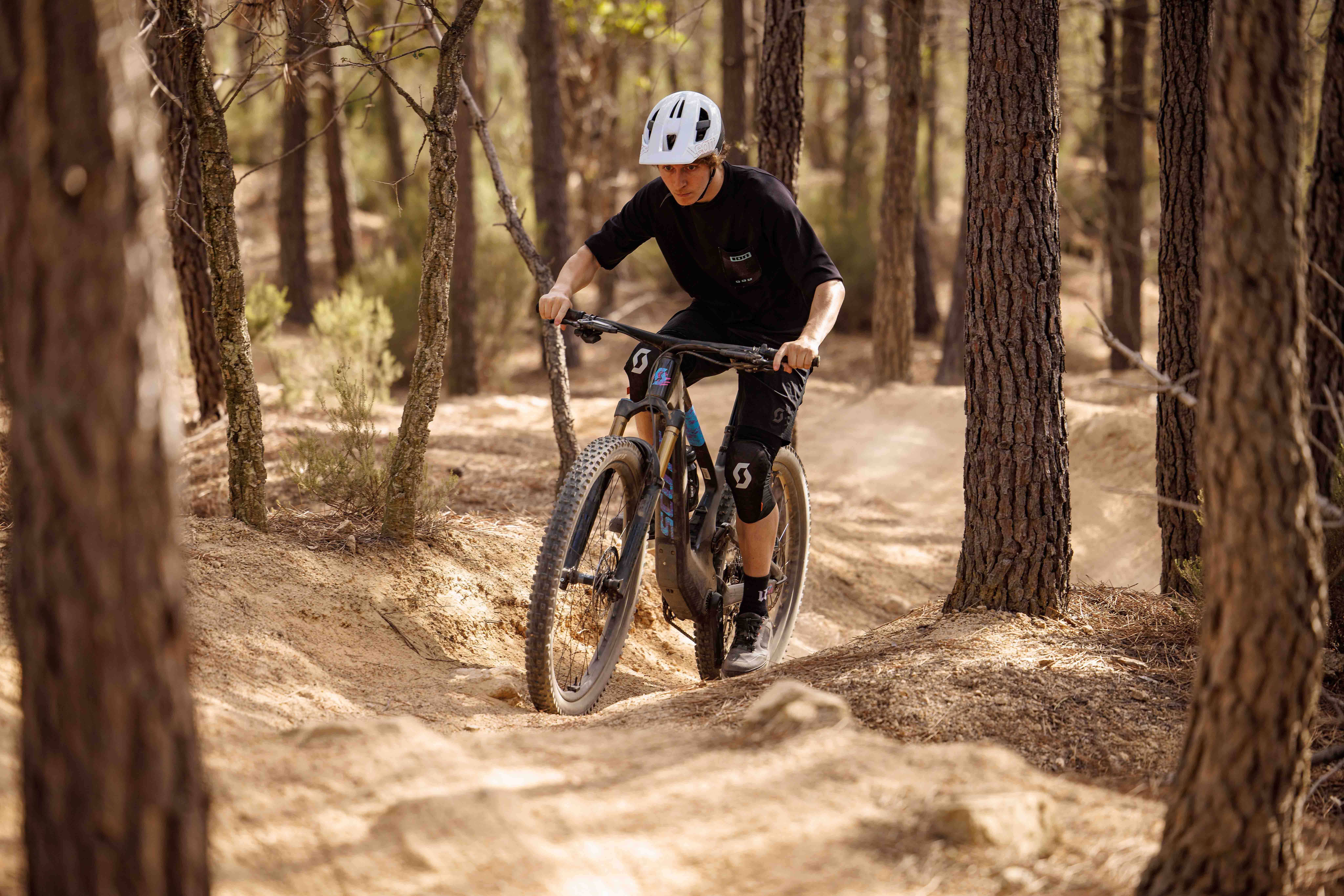 C’est à Santa Coloma, dans le nord-est de l’Espagne, que Scott nous a conviés pour ce premier essai du Scott Voltage. Terre d’enduro espagnole de prédilection, Santa Coloma a tout le nécessaire pour mettre le Voltage à l’épreuve : drops, rochers, virages techniques, sauts… Pour nous guider à travers ce labyrinthe de trails, l’ambassadeur espagnol de la marque et pilote local de Santa Coloma, Luca Leonardi (ici en photo), ouvrait la voie !