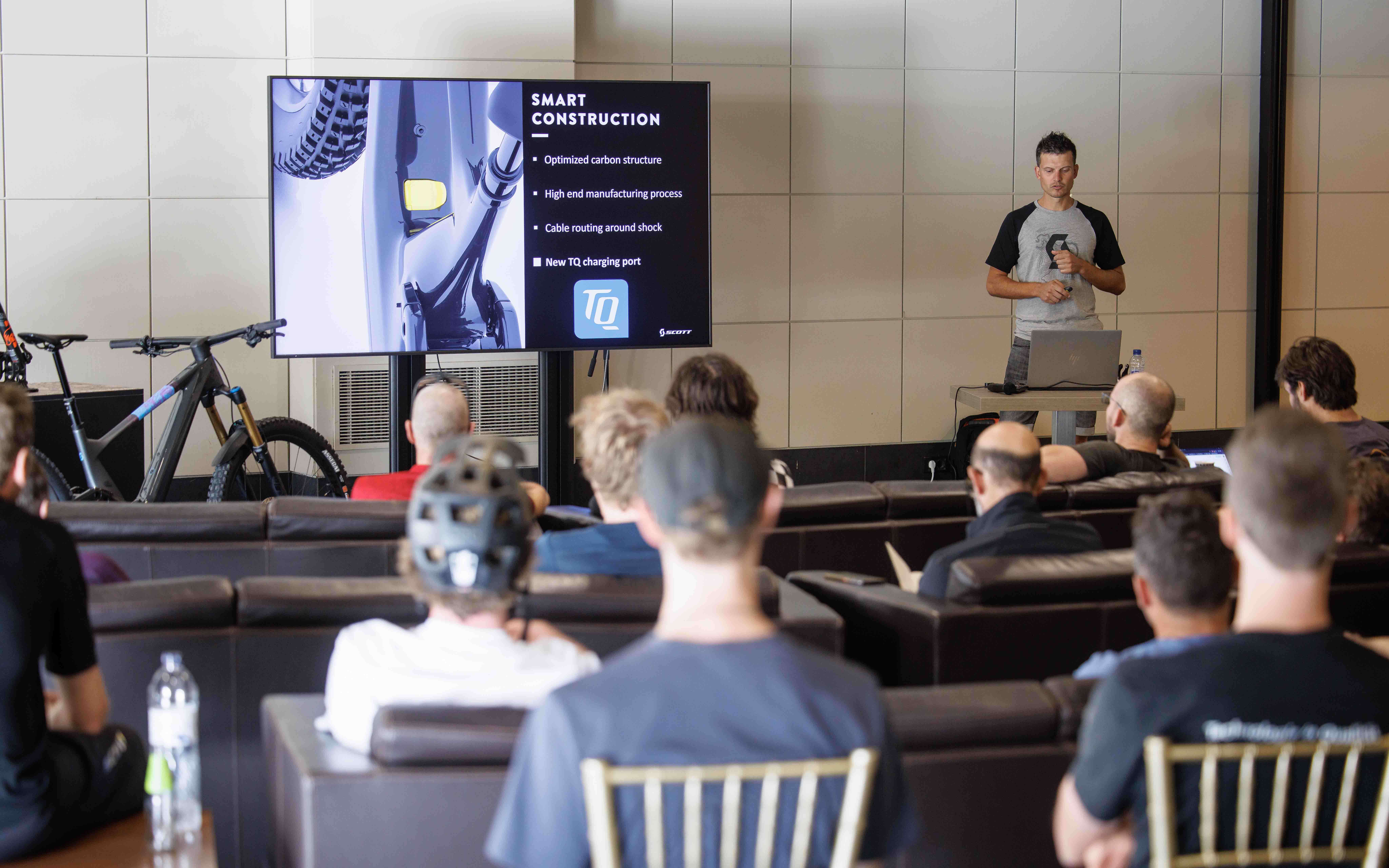 Scott a travaillé main dans la main avec le motoriste TQ pour mettre en place un nouveau port de charge, plus compact et optimisé que la version habituelle. « Le port de charge de série ne fonctionnait pas avec notre cadre, où tout est millimétré. On voulait toutefois conserver le port de charge externe. On a donc finalement trouvé une solution directement avec TQ » explique la marque de Givisiez.