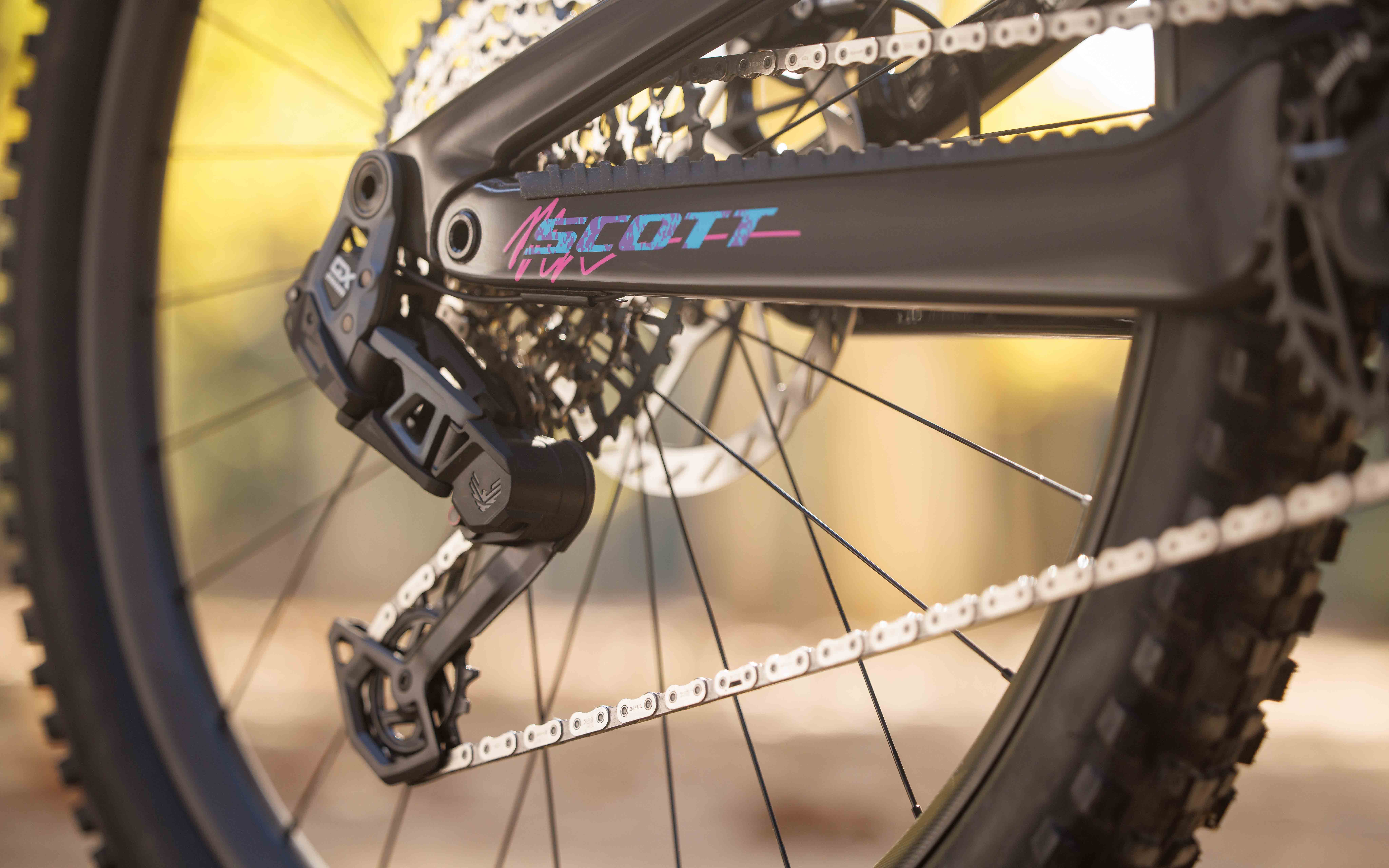 La transmission est une Sram GX T-Type, avec un plateau de 34 dents (cf. Test | Sram Eagle AXS 2023 : sans égal). On notera que Scott a opté pour la commande au guidon « Rocker Puddle » et non les pods habituels livrés avec les groupes T-Type.