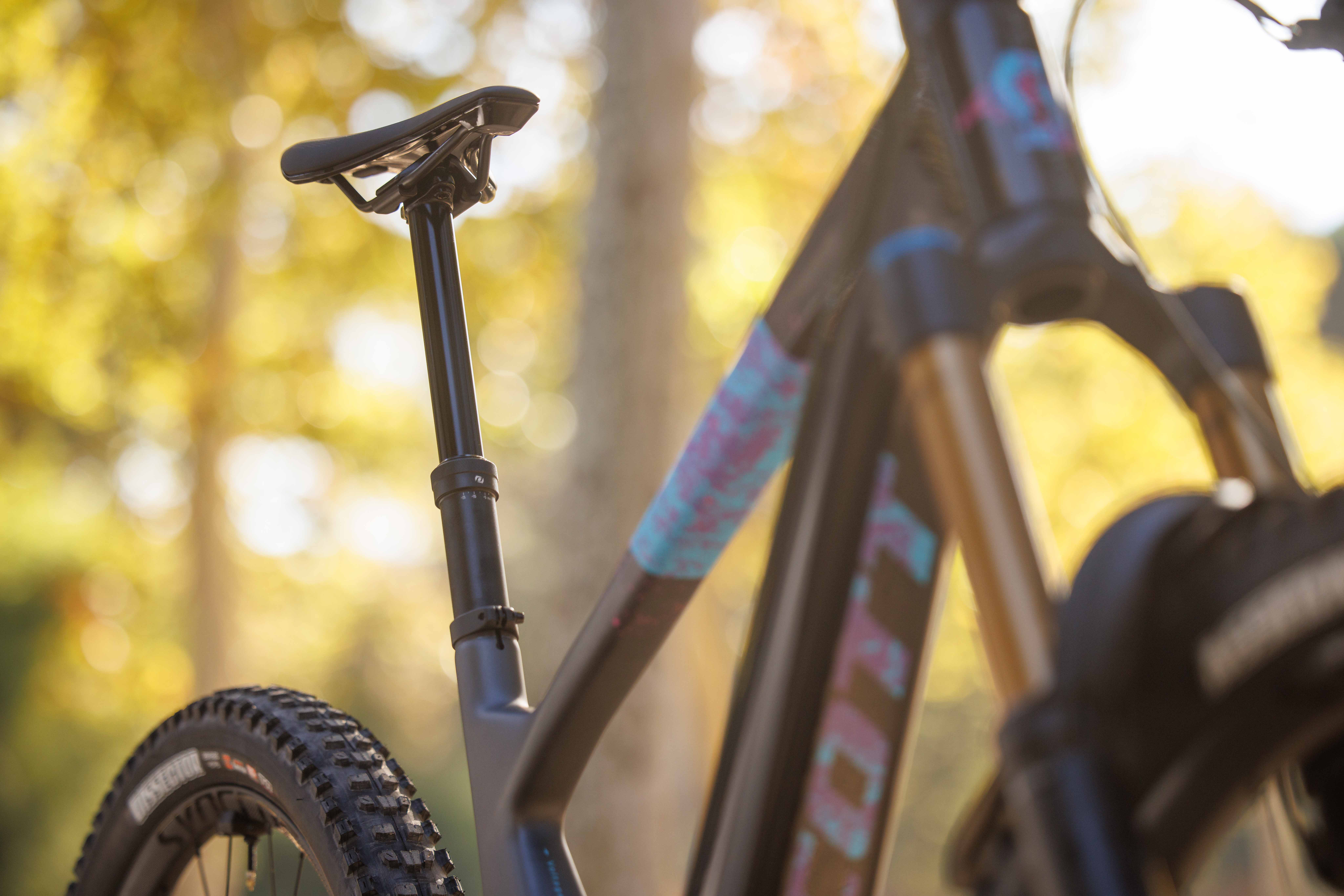 « Le design du cadre nous a permis de favoriser l’insertion de tige de selle télescopique. On a ainsi suffisamment de place sur une taille S pour une tige de selle de 140 mm de débattement, 180 mm sur les cadres en taille M, et 210 mm pour les tailles L et XL » précise Yan. « Du côté des détails, le vélo est livré avec une protection de base ainsi que le fameux multioutil intégré au sein du levier de roue arrière, qui cache toujours une Torx T25, une T30 et une clé hexagonale 6 mm », termine-t-il.