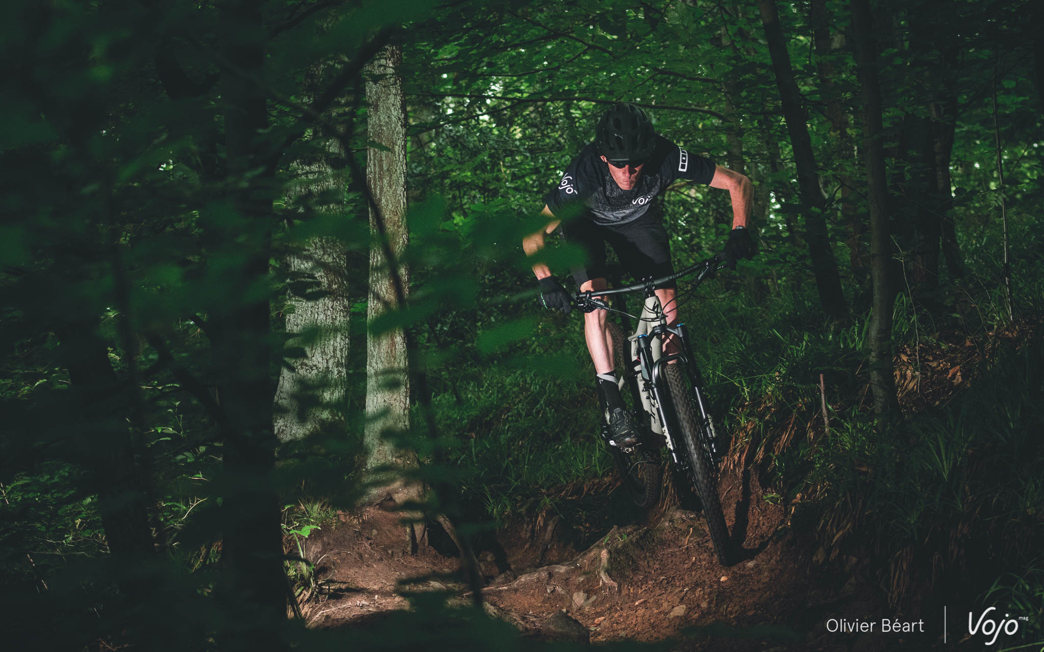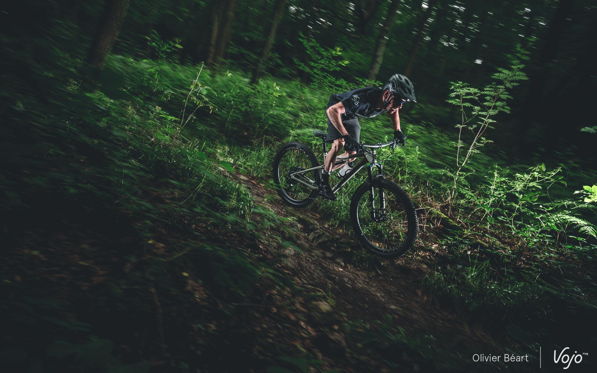 Après avoir aussi travaillé un peu sur le réglage du rebond pour accélérer un peu le retour et obtenir un vélo un peu plus dynamique sur les enchainements de chocs, nous avons trouvé un bel équilibre entre les suspensions et un Epic comme on l’aime, à savoir nerveux, ludique et dont les capacités en descente sont dopées par la proue en 120mm plus rigide.