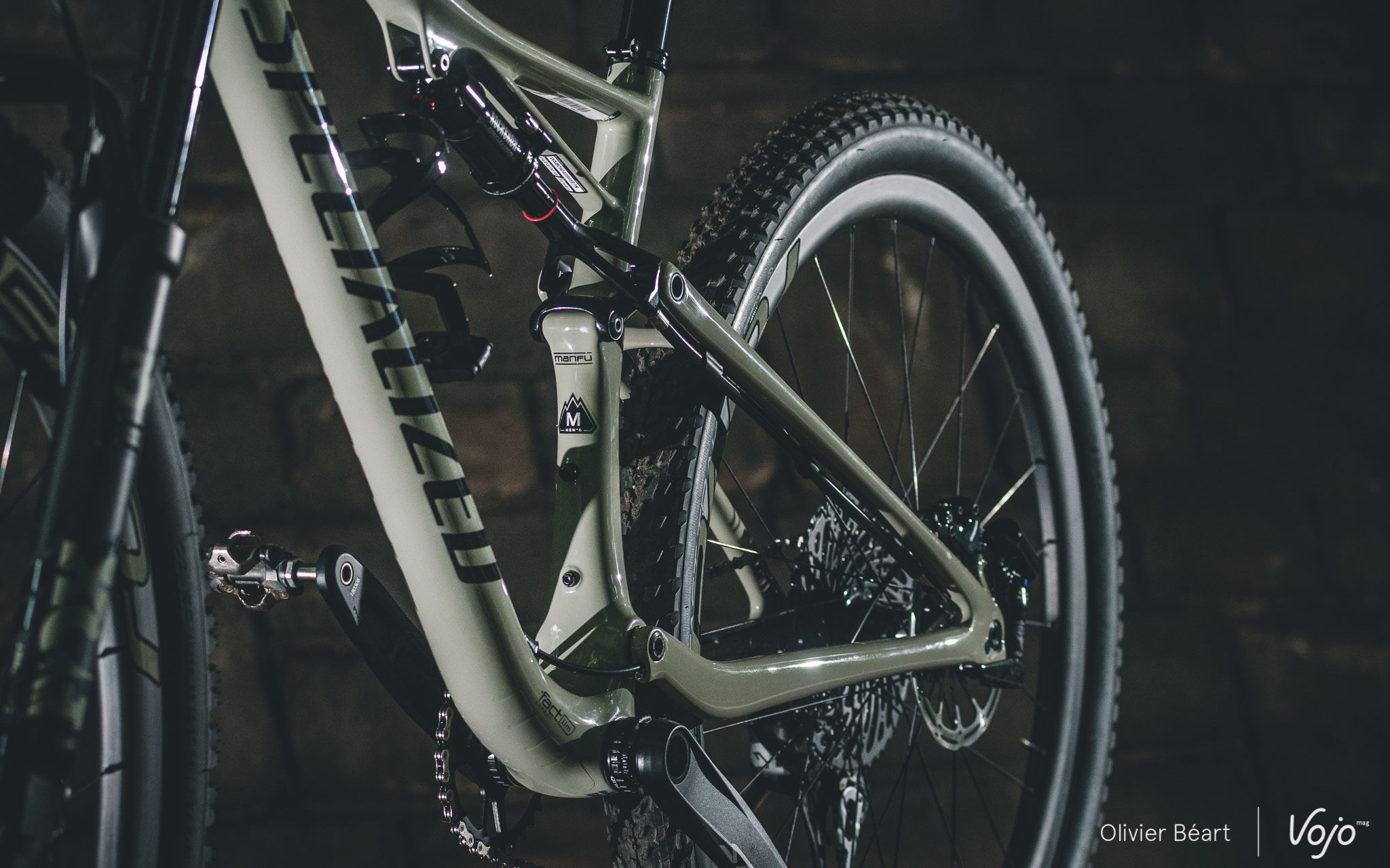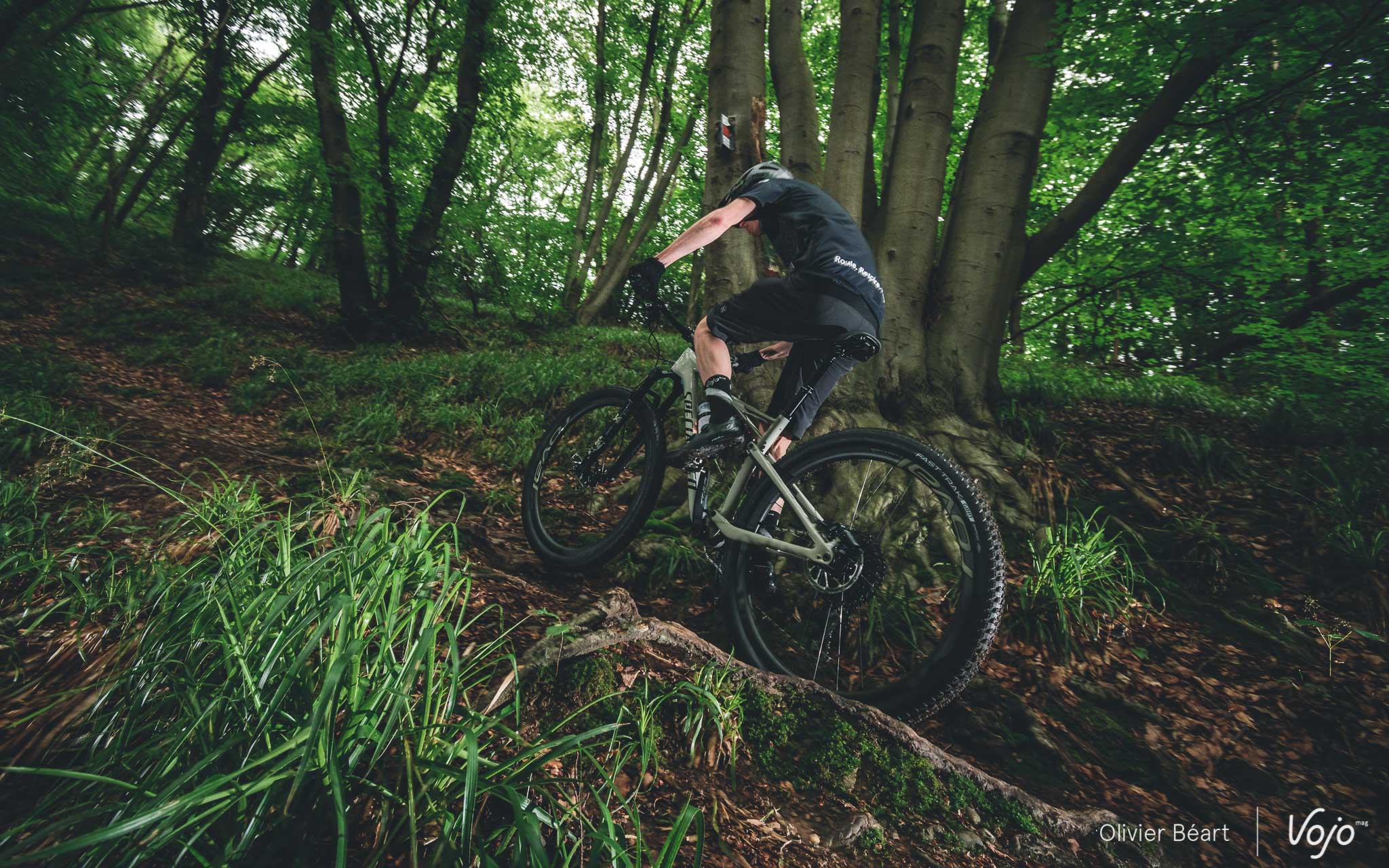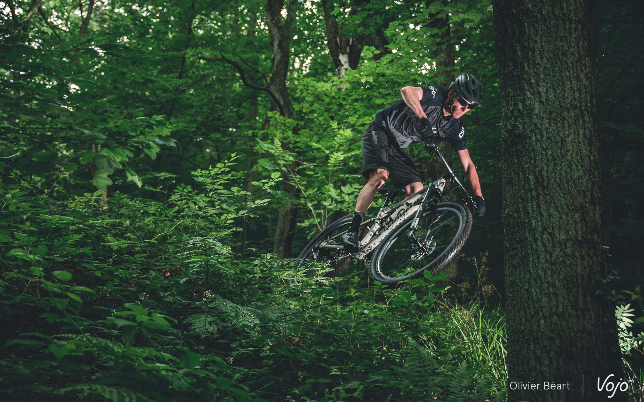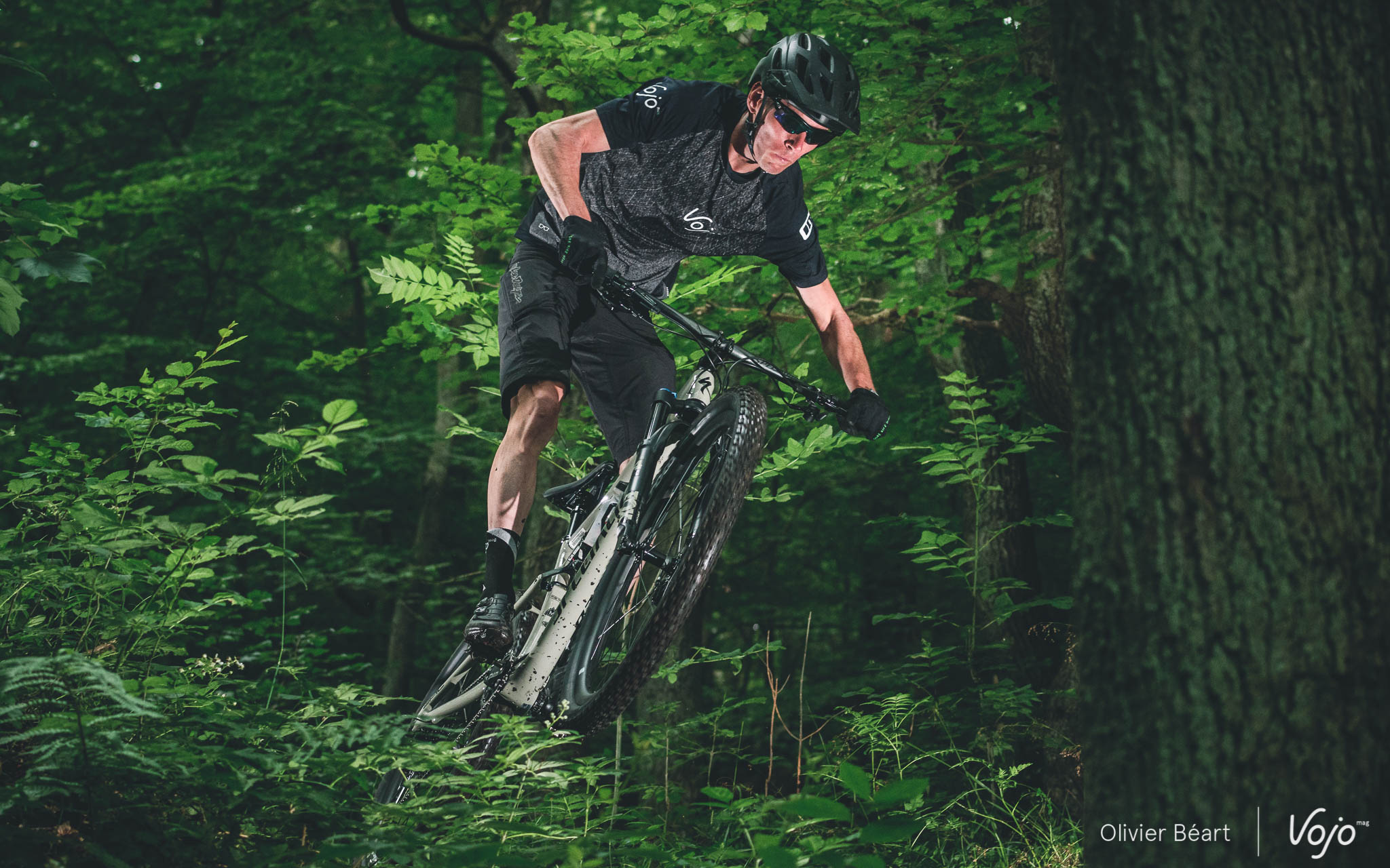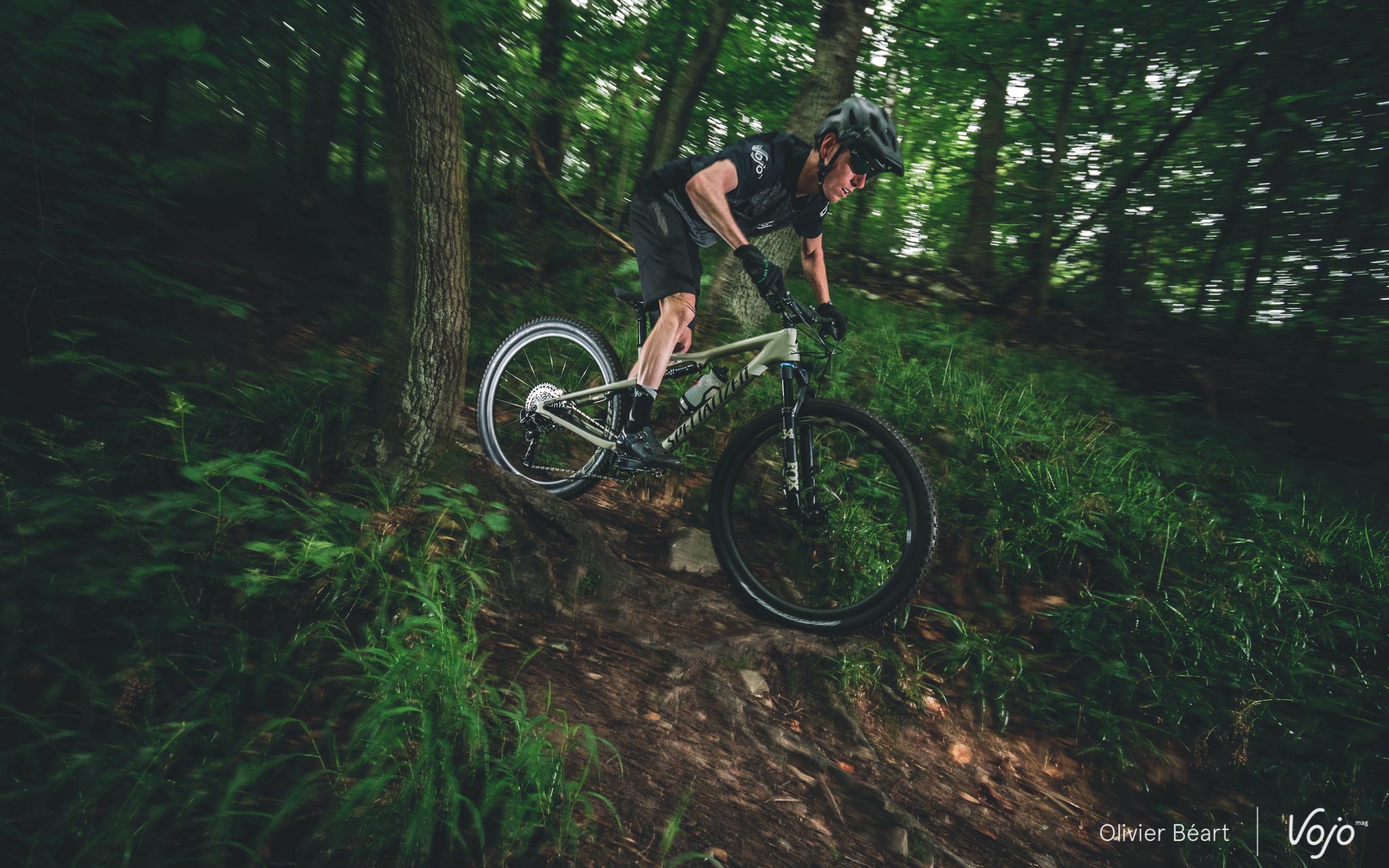 Plus accessible, l’Epic Evo est aussi plus capable et en terminant ce test par quelques descentes plus typées enduro, on se rend compte qu’il y est vraiment à l’aise. La tige de selle télescopique et la fourche plus haute permettent de basculer plus facilement le centre de gravité sur l’arrière du vélo et de faire rentrer la suspension plus vite dans le débattement, ce qui est plus compliqué sur la version XC dont l’arrière donne toujours l’impression de rester haut. Les gros impacts sont très bien absorbés et, même si on sent que le débattement reste réduit et que son caractère demeure très cross, c’est une machine qui n’a pas peur des terrains difficiles.