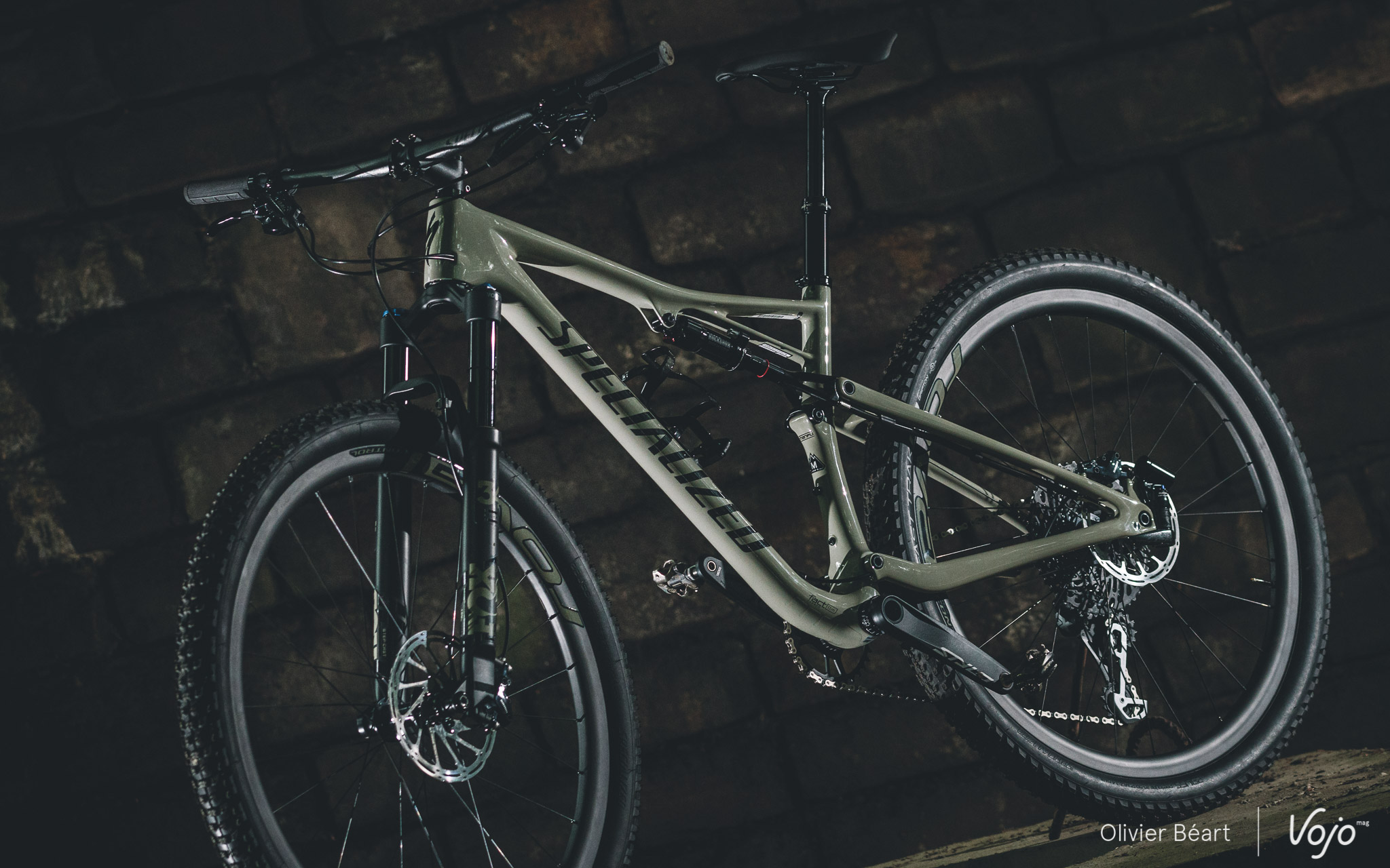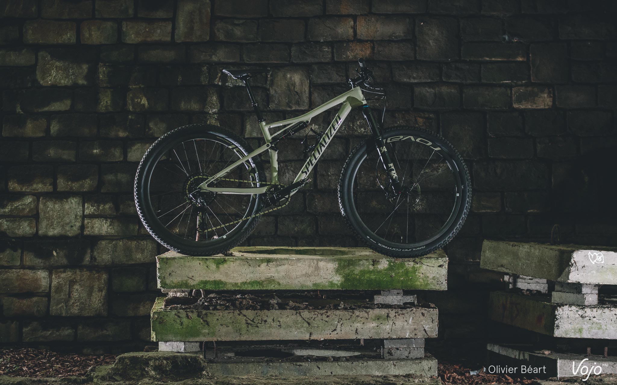 Ne tournons pas autour du pot et levons immédiatement le suspense : le cadre du Specialized Epic Evo est strictement identique à celui que nous avons déjà eu l’occasion de vous présenter lors de sa sortie et que nous avons essayé récemment. Ok, il reçoit une nouvelle (superbe) robe couleur sable/camouflage, mais c’est surtout au niveau des équipements qu’il y a de réels changements, à commencer par une fourche de 120mm qui relève l’avant et modifie la géométrie. Est-ce révolutionnaire ? Non, car il existe déjà quelques plateformes similaires (Focus O1E, Scott Spark, Niner RKT). Est-ce une nouvelle tendance ? Oui, et on risque de voir de plus en plus de vélos du genre ! Pensons notamment au nouvel Orbea Oiz, qui sort d’emblée en version pur XC 100mm et en TR 120mm.