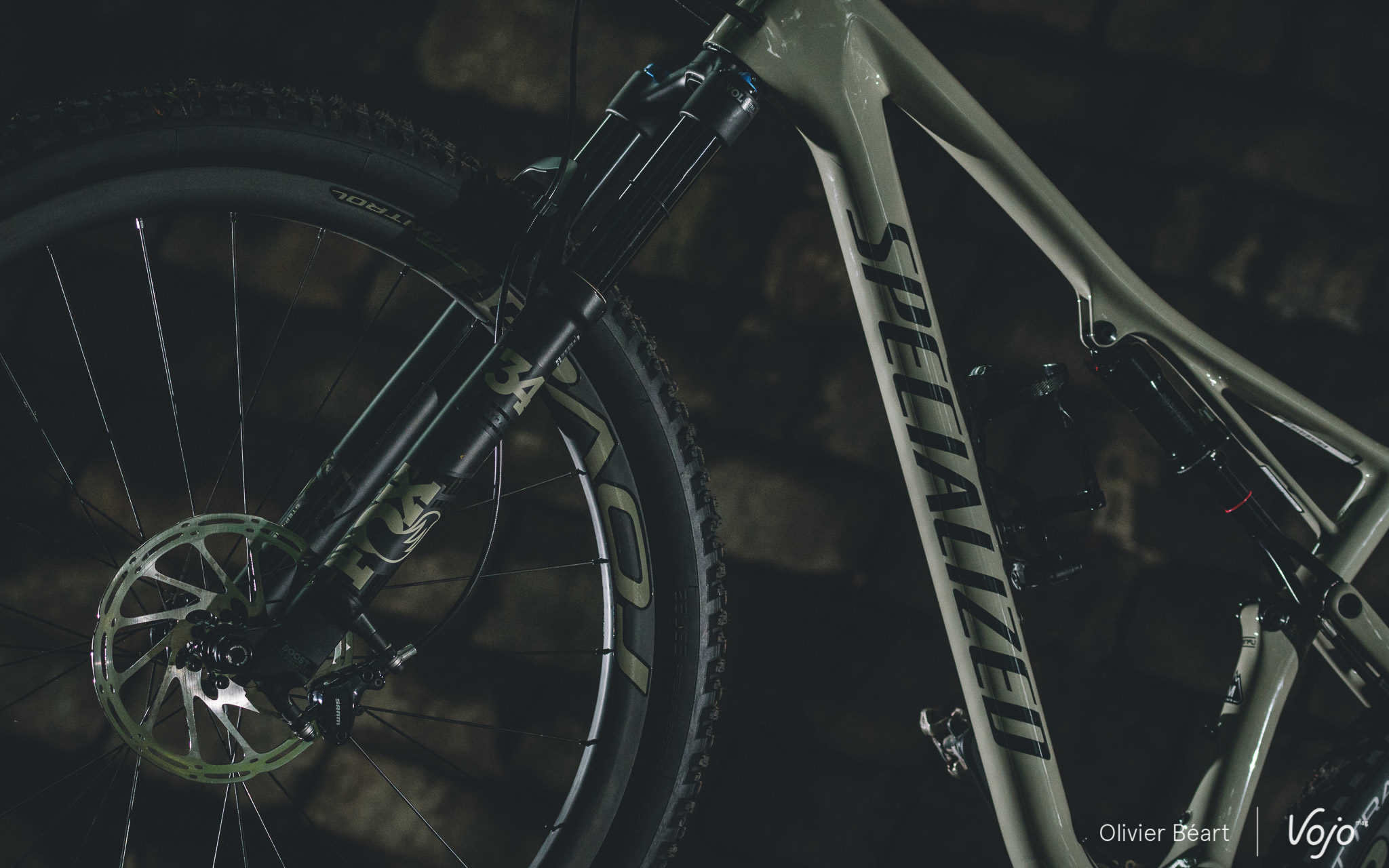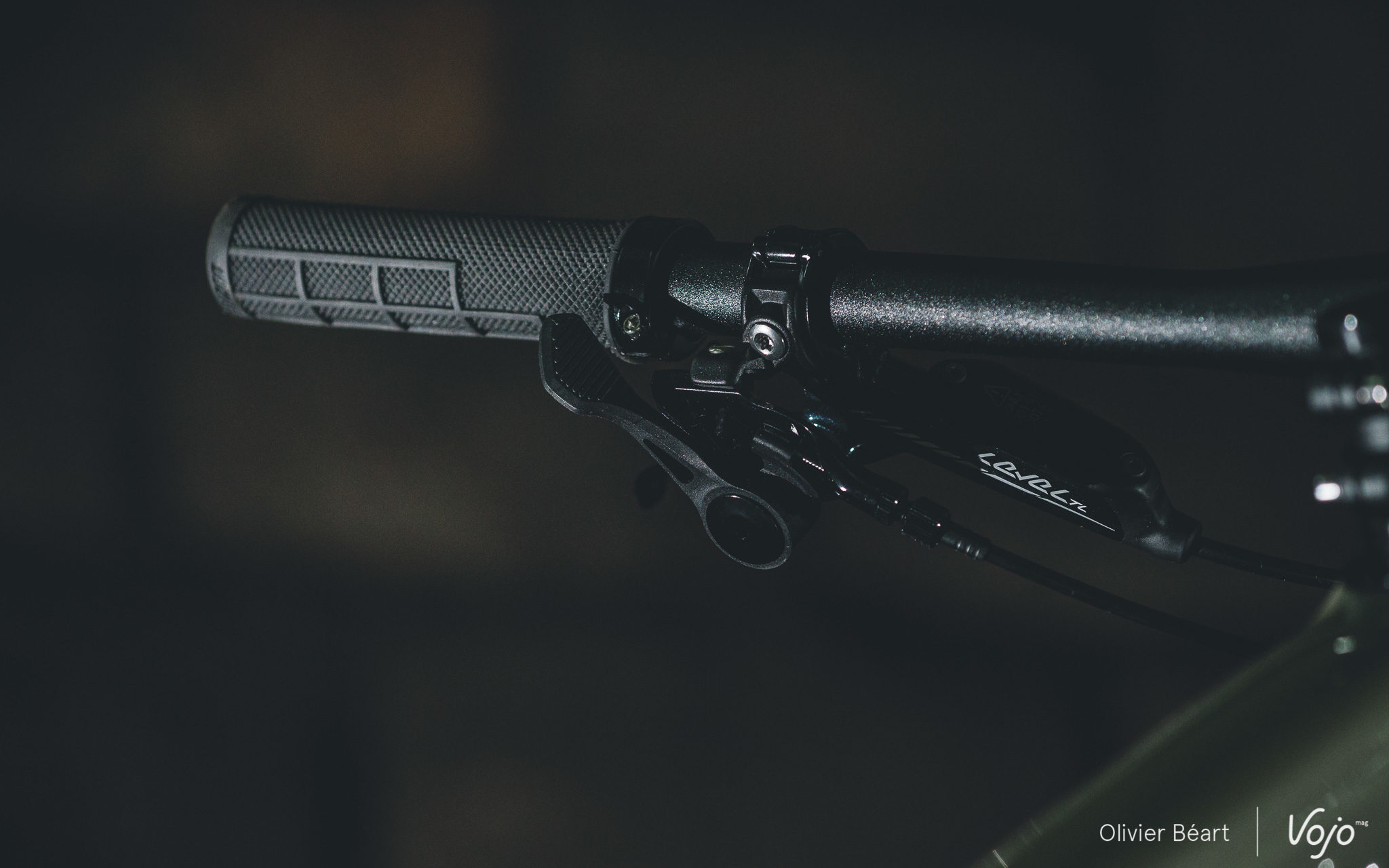 Le freinage est aussi un peu amélioré. On a (hélas) toujours les Sram Level TL qui manquaient de puissance pour nous quand nous avons essayé l’Epic Expert en 100mm, mais on a un disque avant en 180mm qui améliore un peu les choses. Reste que, tant qu’à faire, on aurait pu passer sur des Guide ou des Shimano XT.