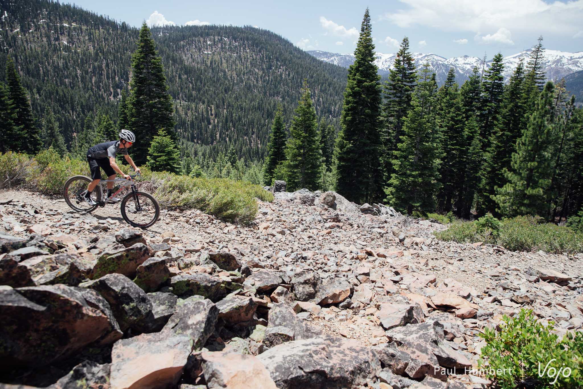 Direction le nord de la Californie pour découvrir ce nouveau Specialized Epic Hardtail. Le terrain y est assez rocailleux dans toute la phase ascendante avant de nous présenter de belles sections de terre meuble. Nous sommes accompagnés des chefs produits et de certains athlètes de la marque pour échanger autour de la machine en question.