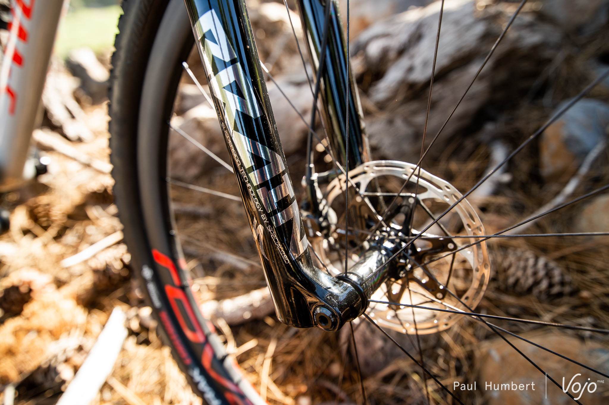 Sur les vélos, on retrouve une nouvelle version de la Rockshox SID, avec une cartouche Brain retravaillée pour être plus sensible sur les petits chocs avant de se verrouiller dans les phases de pédalage et de sprint. Le fonctionnement reste dans le même esprit que ce qui a été présenté jusque là sur le nouvel Epic, mais le début de course est raffiné pour plus de grip et de confort, sans perdre en performance. Côté débattement, le Specialized Epic Hardtail affiche 100mm, et 80mm sur la taille XS.