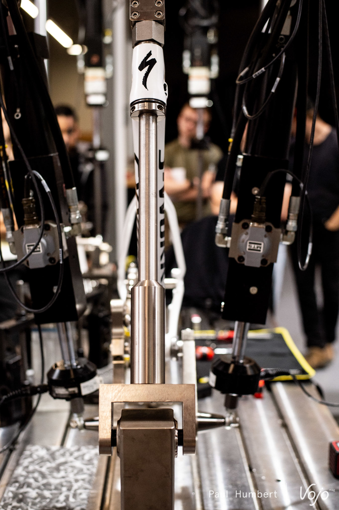 Pour aller toujours plus loin, Specialized a même réussi à supprimer les inserts en aluminium des bases. La marque annonce toutefois que le cadre est tout aussi solide que la précédente version. Celle-ci répondant aux mêmes tests, que nous avons pu, en partie, découvrir. D’ailleurs, l’équipe de la marque nous annonce avoir travaillé sur 15 prototypes aux rigidités différentes.