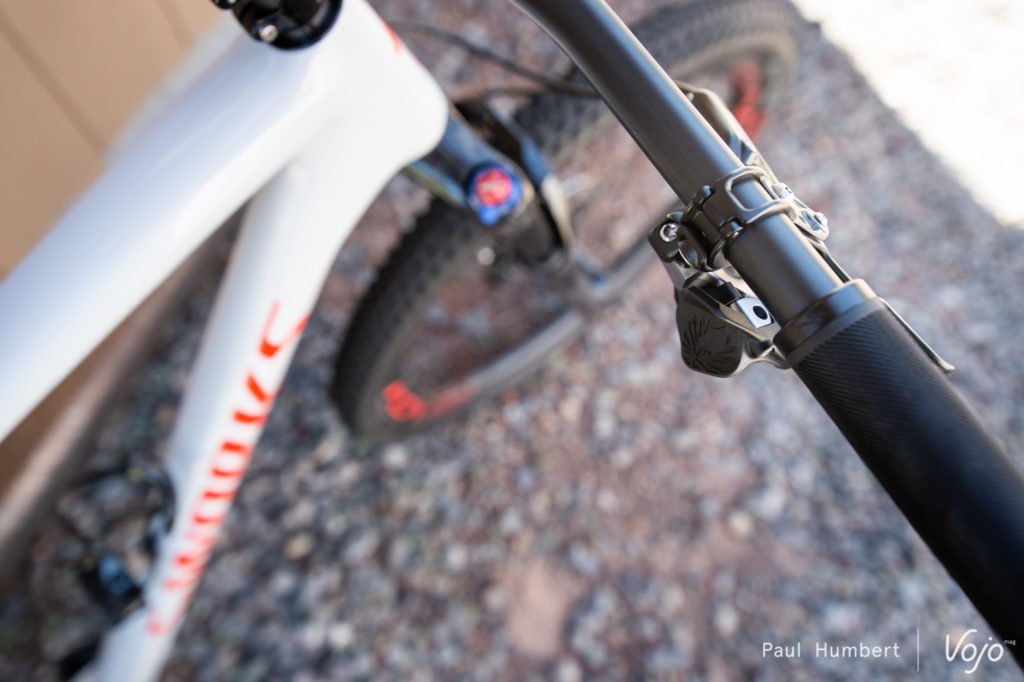 Pour ce qui est du confort, Specialized laisse de la place pour des pneus plus gros, jusqu’à 2.3, voire 2.4, et permet l’installation d’une tige de selle télescopique avec son tube de selle de 30.9mm de diamètre.