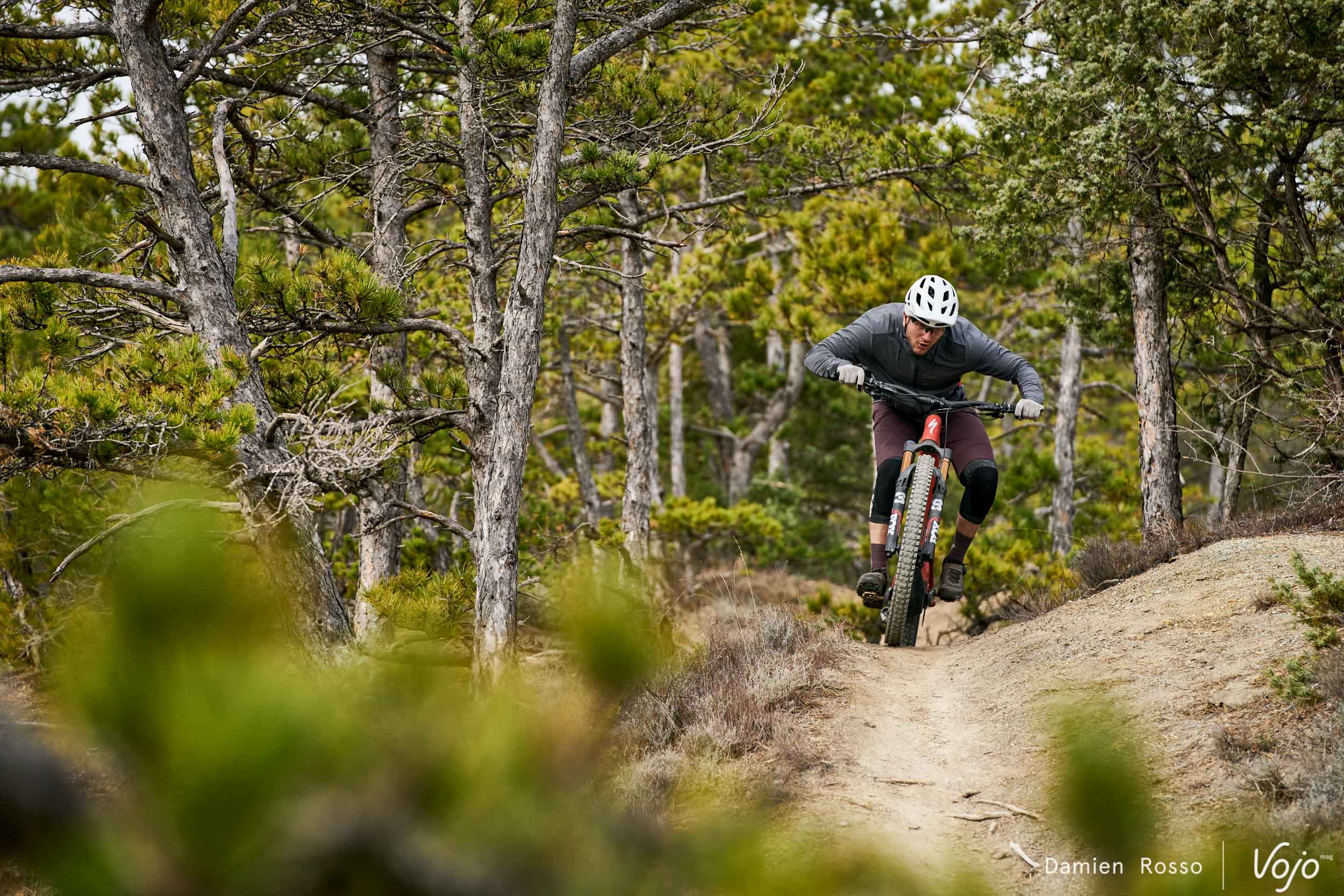C’est bon, vous voyez un peu de quoi on parle maintenant ? Alors direction les singletracks de folie de Peyruis, dans le 04, pour un premier galop d’essai au guidon de cette machine élitiste par son tarif (on parle d’un peu plus de 11000€ pour le modèle Pro essayé, qui n’est même pas encore le plus haut de gamme) et par sa fiche technique, mais qui s’avère en fait en réalité beaucoup plus accessible qu’il n’y paraît une fois qu’on l’emmène sur les sentiers.