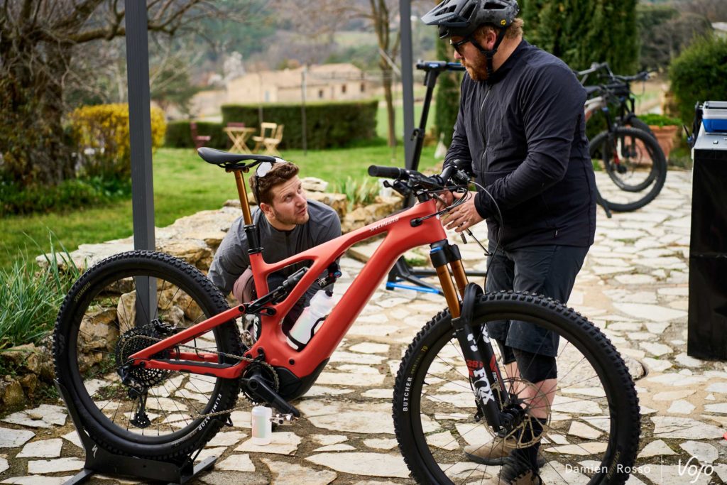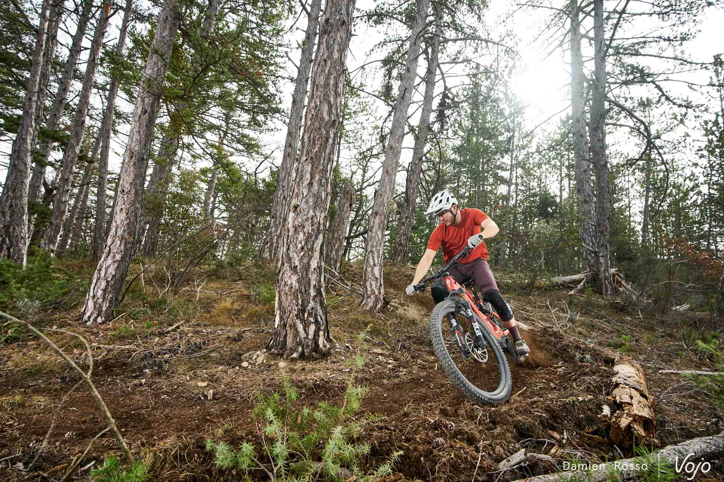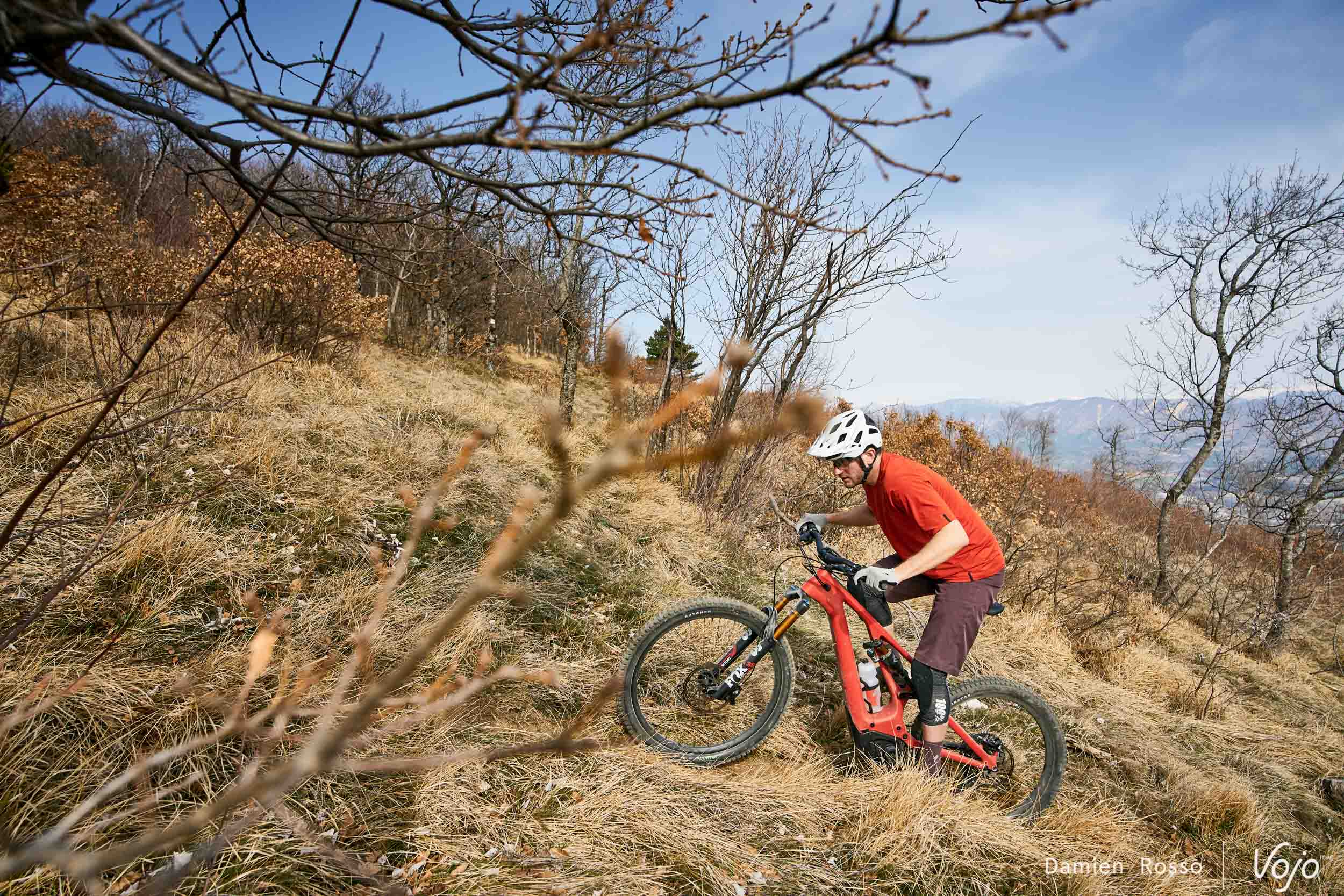 C’est bon, vous voyez un peu de quoi on parle maintenant ? Alors direction les singletracks de folie de Peyruis, dans le 04, pour un premier galop d’essai au guidon de cette machine élitiste par son tarif (on parle d’un peu plus de 11000€ pour le modèle Pro essayé, qui n’est même pas encore le plus haut de gamme) et par sa fiche technique, mais qui s’avère en fait en réalité beaucoup plus accessible qu’il n’y paraît une fois qu’on l’emmène sur les sentiers.