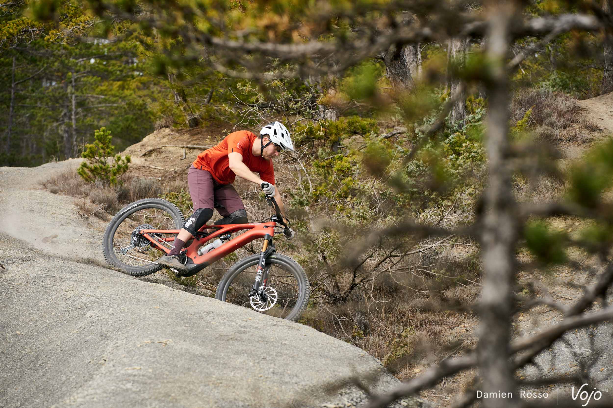 De manière générale, Specialized s’inscrit dans le mouvement actuel avec un reach augmenté, un tube de selle plus droit pour favoriser le pédalage en côte technique, des bases raccourcies (-8 à -14mm par rapport à la précédente version selon le réglage) et une volonté de basculer légèrement le pilote sur l’avant pour l’aider à charger la roue directrice.