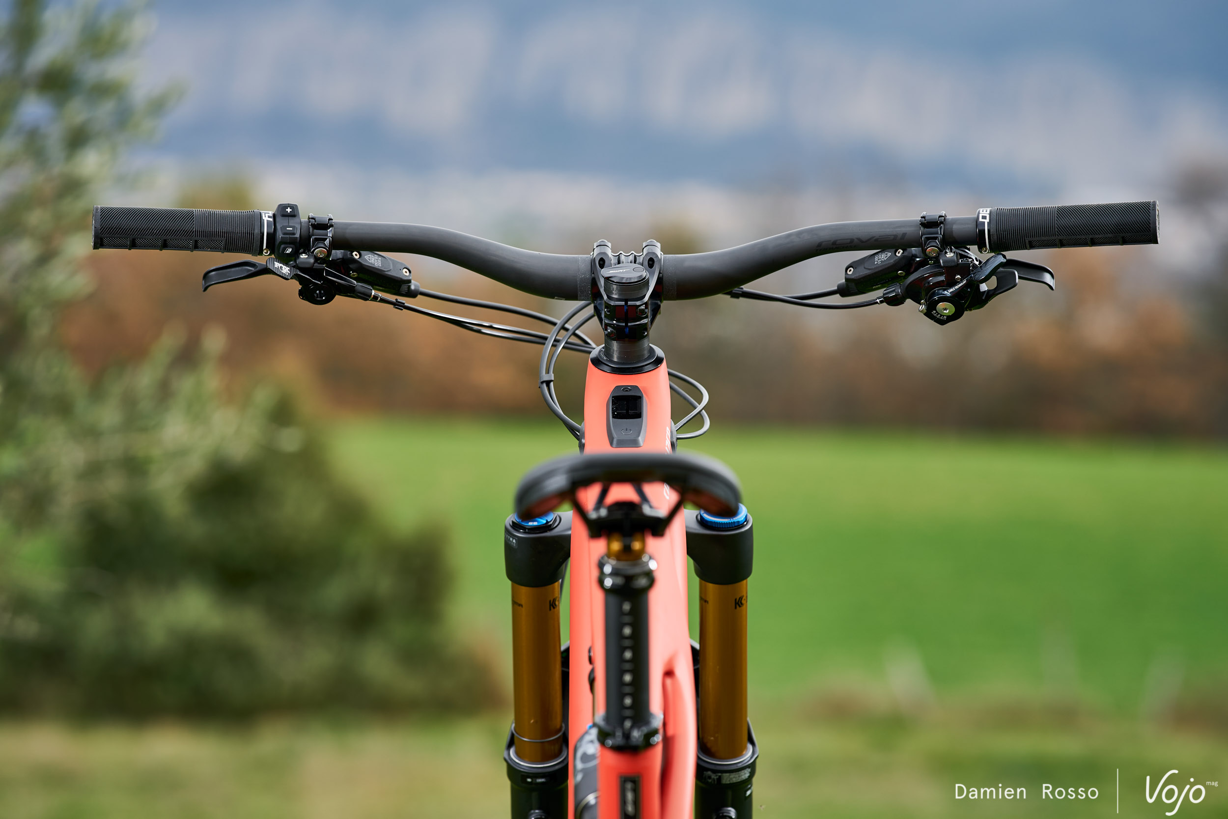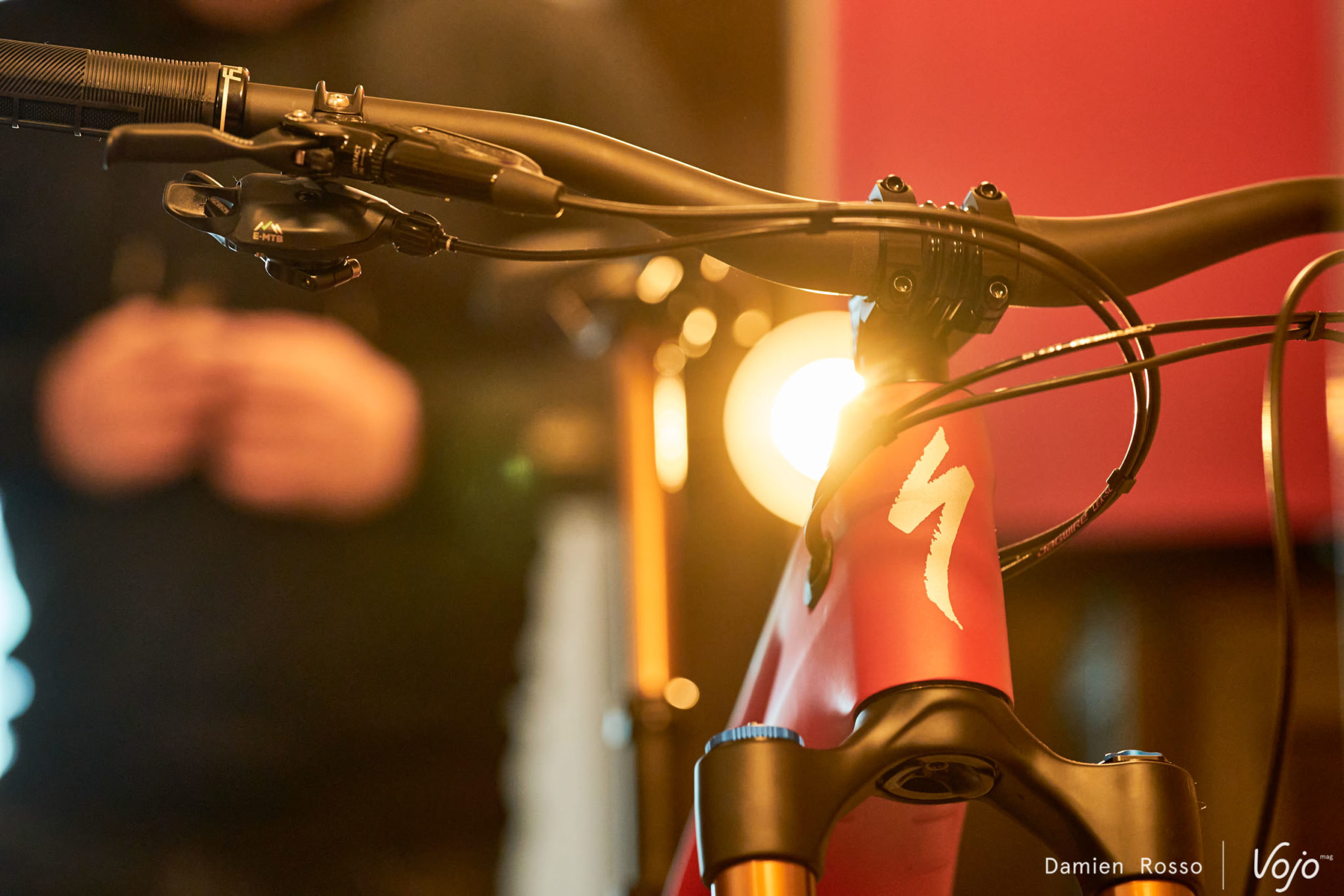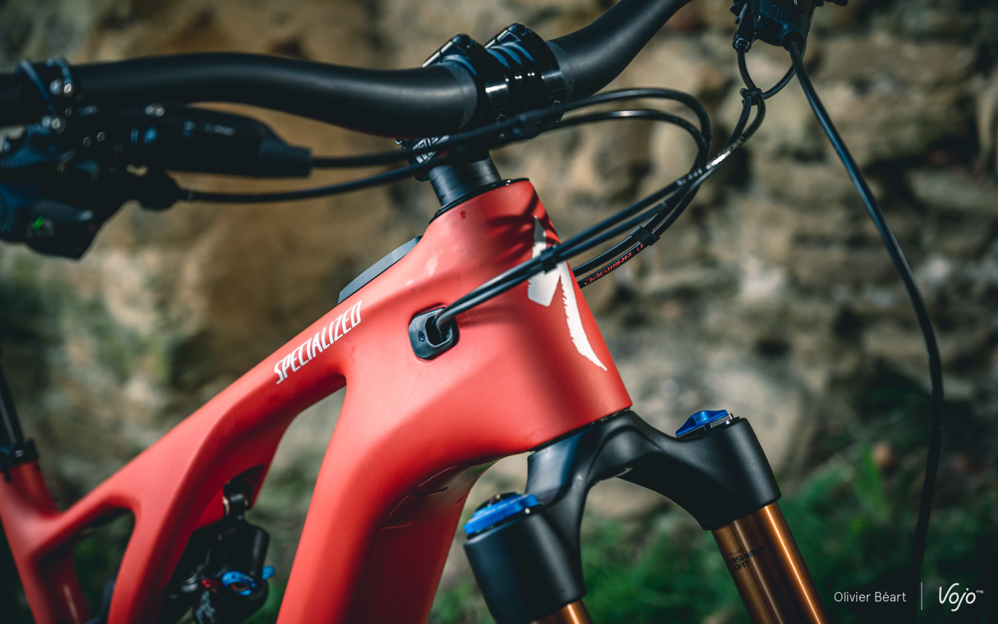 De manière générale, Specialized s’inscrit dans le mouvement actuel avec un reach augmenté, un tube de selle plus droit pour favoriser le pédalage en côte technique, des bases raccourcies (-8 à -14mm par rapport à la précédente version selon le réglage) et une volonté de basculer légèrement le pilote sur l’avant pour l’aider à charger la roue directrice.