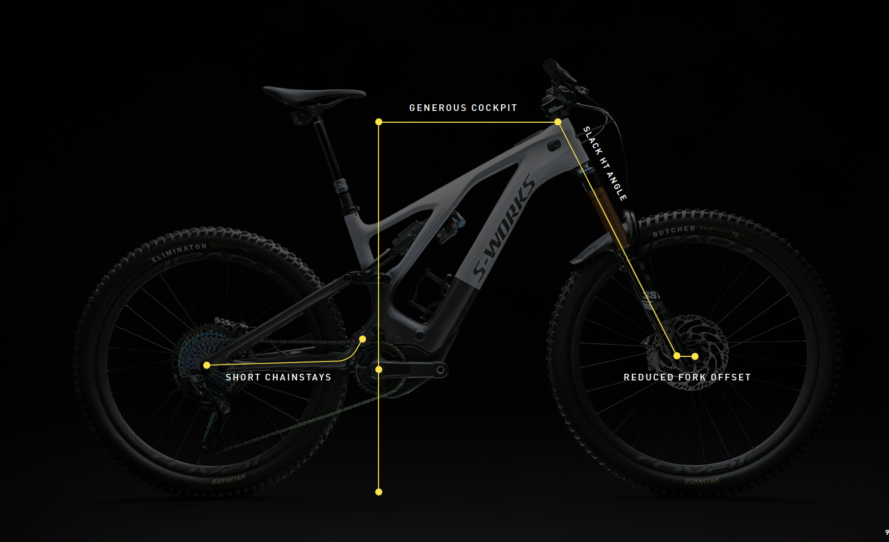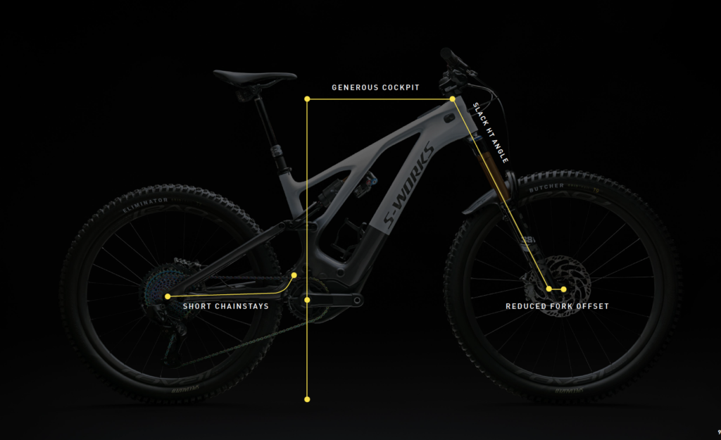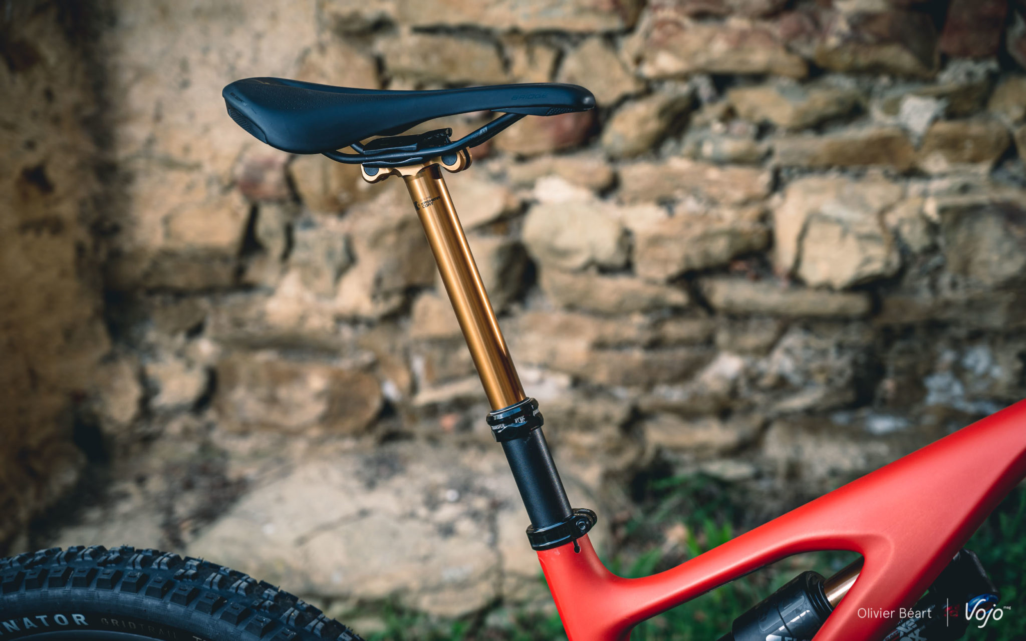 De manière générale, Specialized s’inscrit dans le mouvement actuel avec un reach augmenté, un tube de selle plus droit pour favoriser le pédalage en côte technique, des bases raccourcies (-8 à -14mm par rapport à la précédente version selon le réglage) et une volonté de basculer légèrement le pilote sur l’avant pour l’aider à charger la roue directrice.
