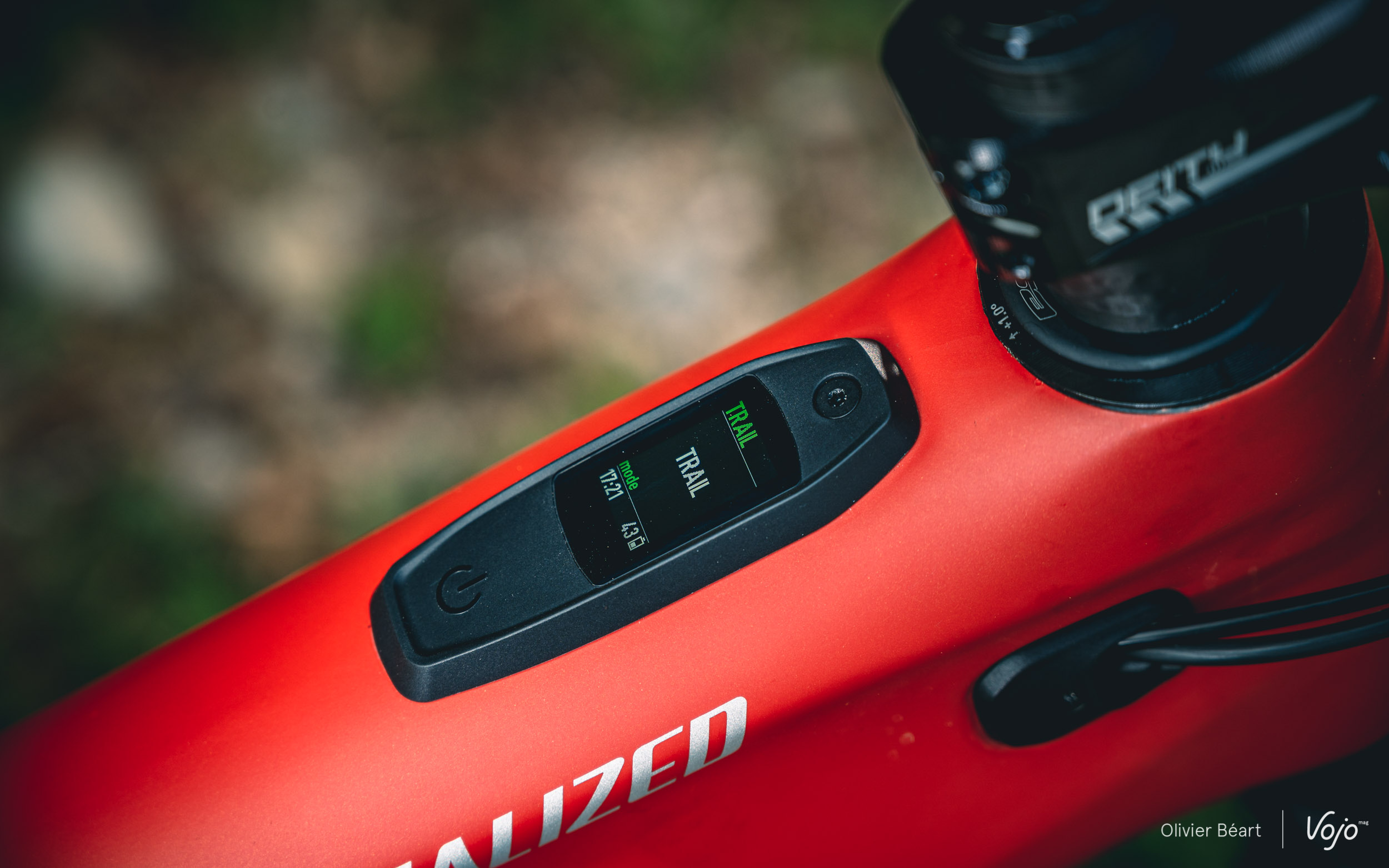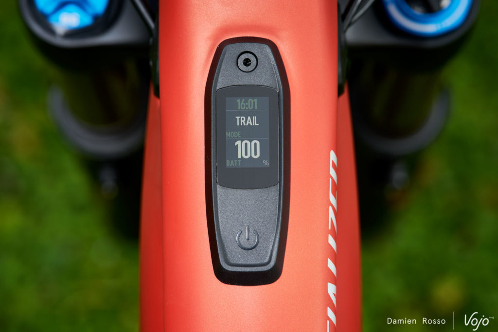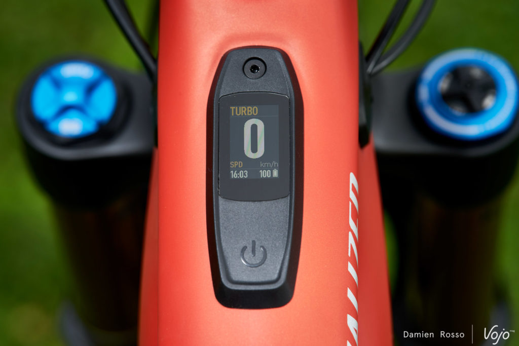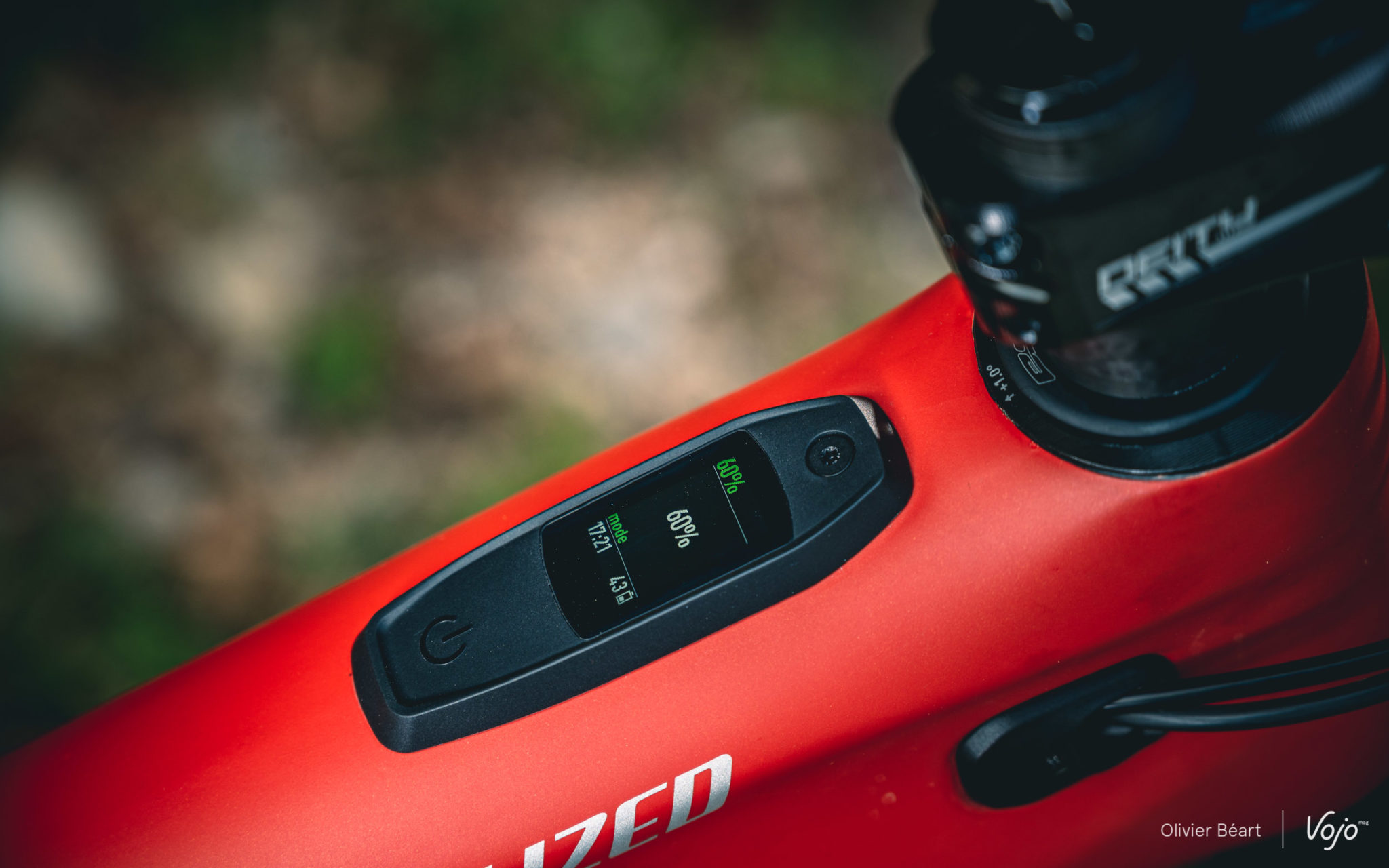 Cet afficheur plus complet permet toujours de voir le mode d’assistance choisi et le niveau de batterie, mais aussi toute une série d’informations comme sur un GPS/compteur. Estimation de l’autonomie, kilométrage, ratio de puissance pilote/assistance, affichage de l’heure : en tout il y a pas moins de 30 fonctions possibles et 16 pages personnalisables. Cette interface est personnalisable via l’app Mission Control et on navigue dans les menus via un nouveau petit bouton situé sur la commande au guidon (et qui remplace le bouton de passage instantané au mode Turbo).