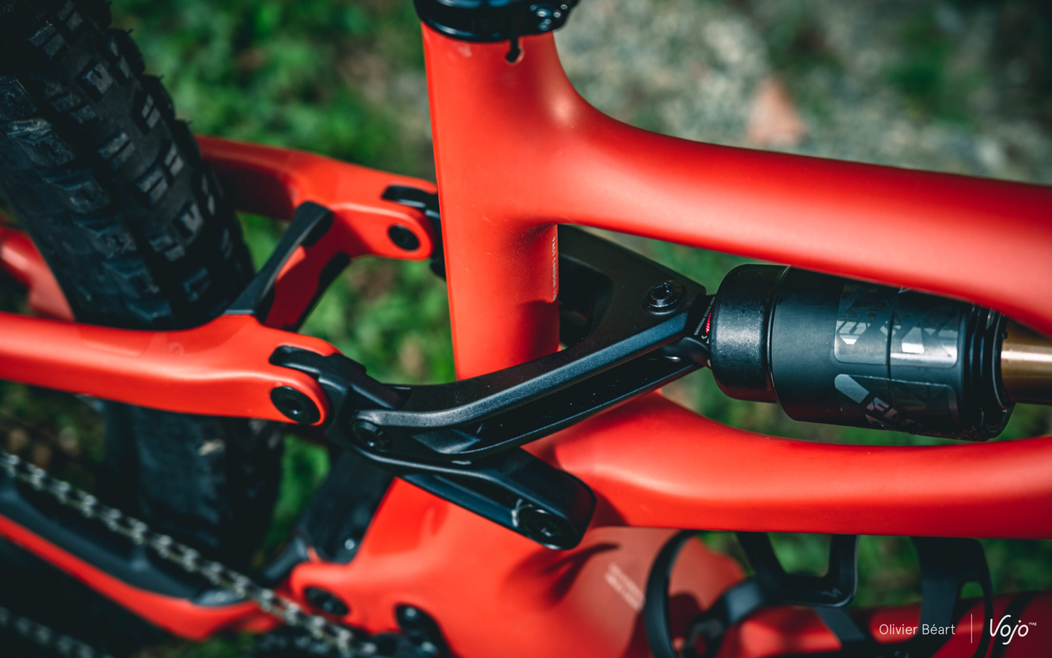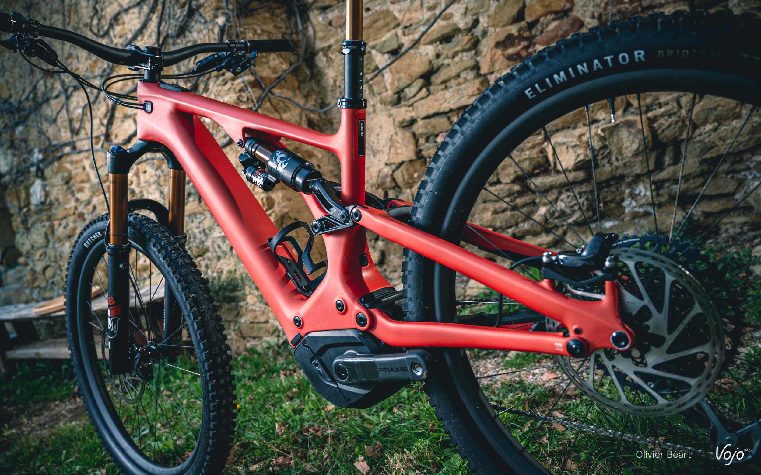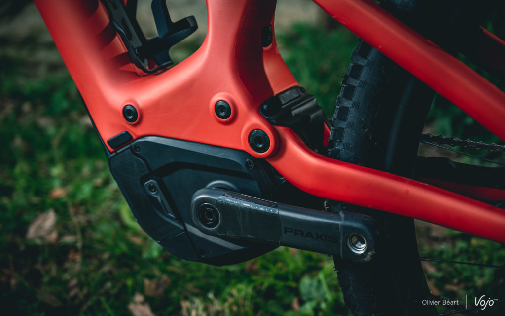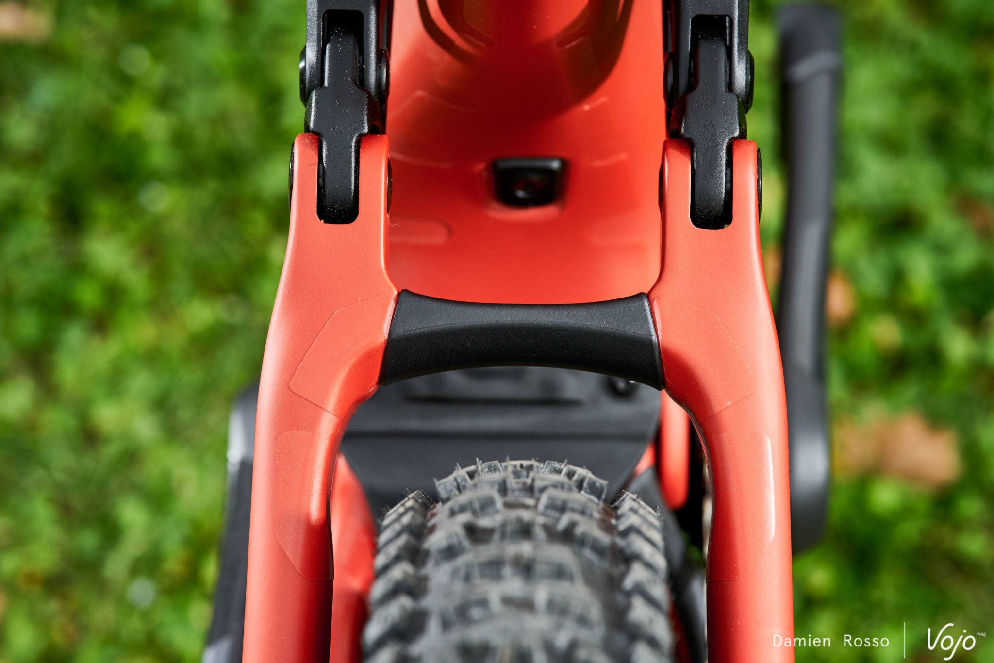Le poids du châssis reste inchangé (autour de 9,5kg avec amortisseur, moteur et batterie) mais l’axe principal de la suspension, la biellette, ainsi que les points d’attache du moteur sont rigidifiés, de même que les triangles avant et arrière grâce à un travail plus poussé sur les fibres de carbone utilisées. Puis, il y a aussi le choix de taille des roues qui joue un rôle.