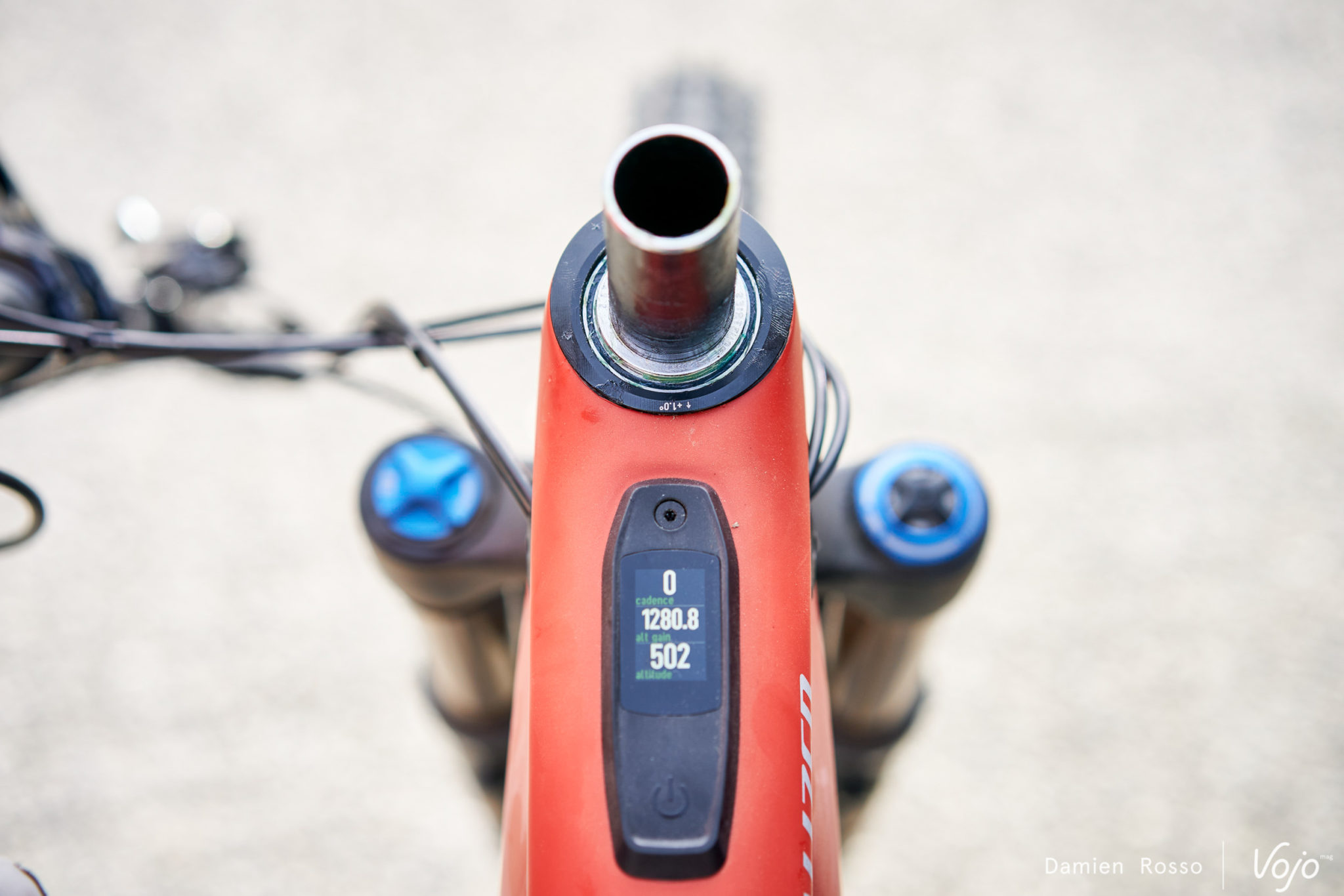 Mais, cerise sur le gâteau, sur le Levo 3 comme sur le Stumpjumper Evo, la géométrie est variable ! On peut ainsi choisir en un tournemain entre des bases très courtes ou un peu plus longues (+/- 6mm) qui influent aussi sur la hauteur du boîtier de pédalier (+/- 6mm aussi), et ajuster son angle de direction entre une position neutre (64,5°) ou +1/-1° au moyen d’une petite coupelle déportée qui prend place au-dessus de la douille de direction. Dit comme cela, on comprend que cela peut paraître un peu compliqué, mais nous verrons plus loin que sur le terrain, les changements sont simples à effectuer et les choses s’éclairent assez vite. Nous y reviendrons dans la prise en main.