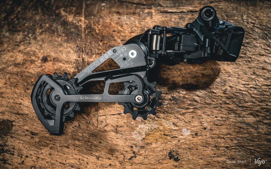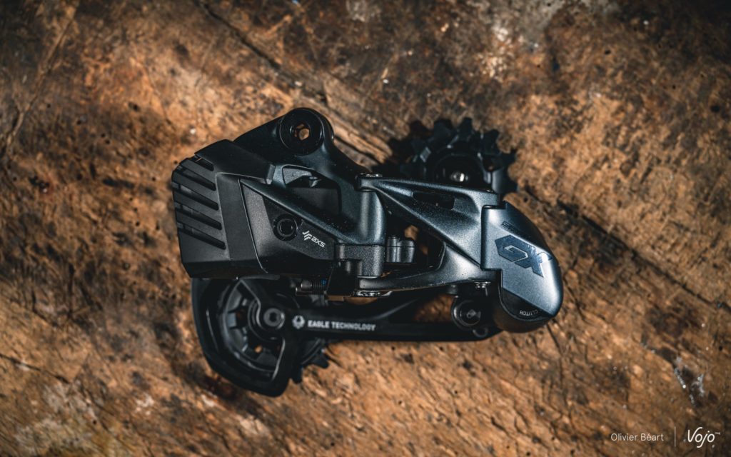 De loin, tous les dérailleurs de la gamme Sram AXS VTT se ressemblent d’ailleurs comme deux gouttes d’eau (à un détail près spécifique au GX et sur lequel nous reviendrons juste après).