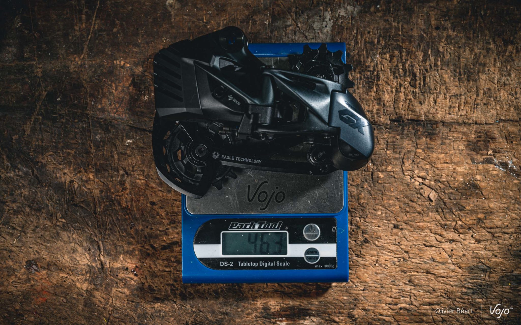 Par contre, baisser le prix tout en conservant la solidité implique de faire des concessions sur le poids. Au final, le dérailleur arrière affiche un peu plus de 460g sur la balance, soit 80g de plus que le XO1 AXS. En pourcentage, cela représente quand même un surpoids non négligeable (+ de 20%) mais dans l’absolu, c’est finalement assez anecdotique sur le poids total d’un vélo. Le poids du shifter est par contre rigoureusement identique à celui des modèles haut de gamme.