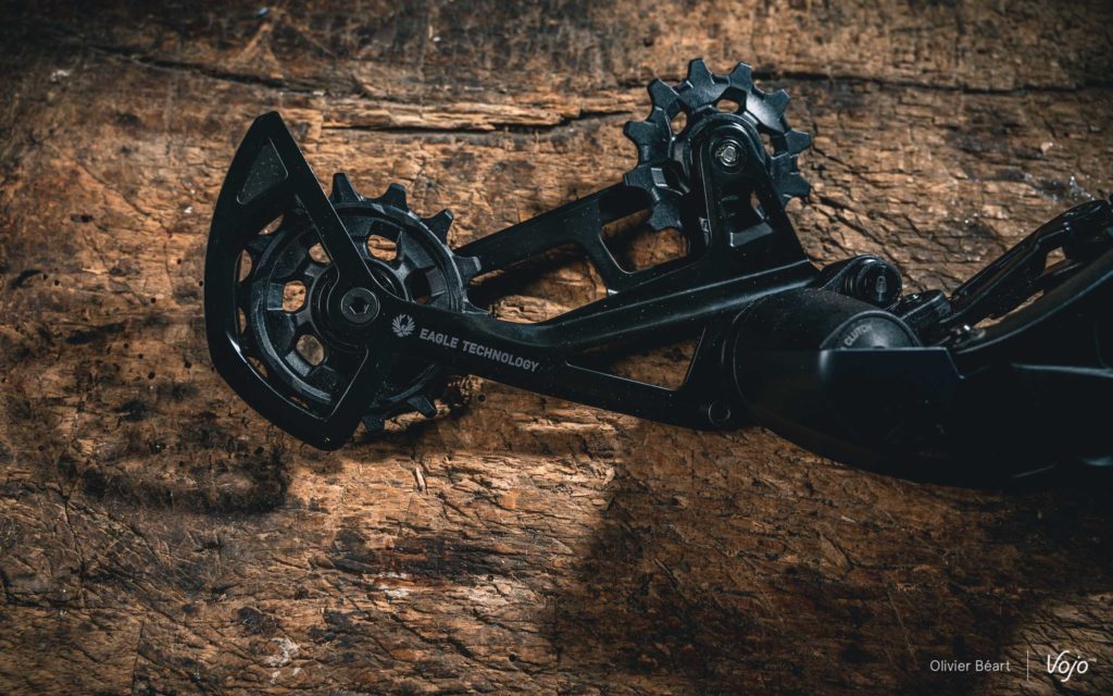 Au niveau du tarif, le kit dérailleur/shifter est annoncé à 620€, contre 1050 pour un XO1 et XX1 Eagle AXS. Cela reste une forte somme, mais la différence de tarif est tout de même très nette par rapport aux versions haut de gamme. Il est disponible immédiatement et on le verra aussi de plus en plus en première monte, surtout sur des vélos à assistance électrique.