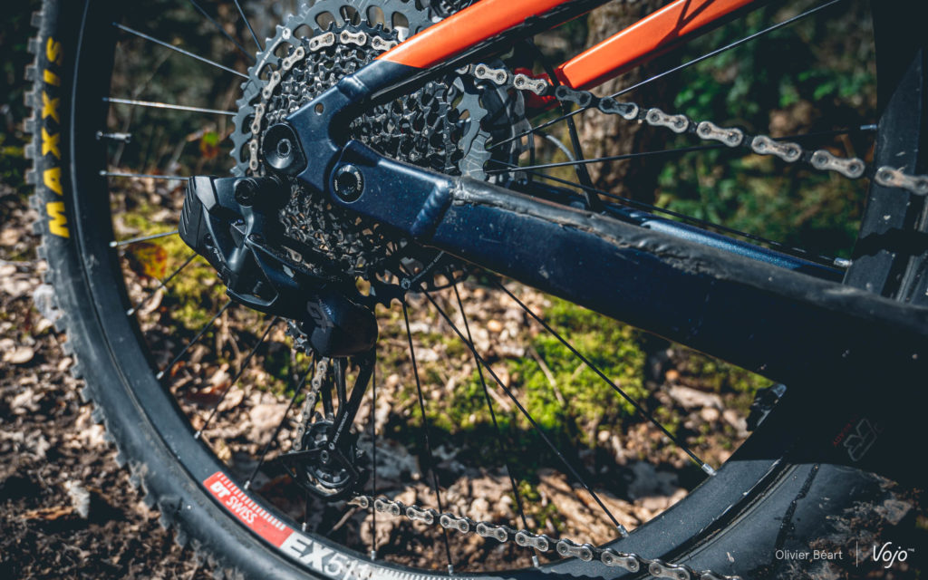 Nous l’avons monté sur deux vélos : un « sec », le Rockrider XC 920S dans une série spéciale qui va sortir avec ce nouveau groupe GX AXS en « guest star » (un test complet de ce vélo suivra très rapidement), et un Scott Genius e-Ride pour un essai sur un VTT à assistance électrique.
