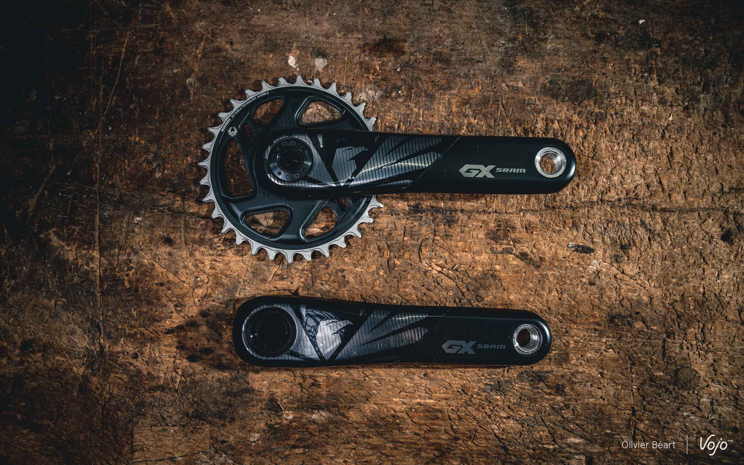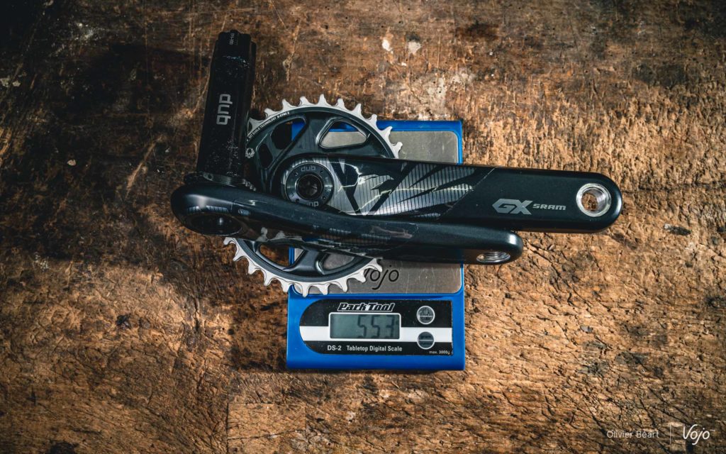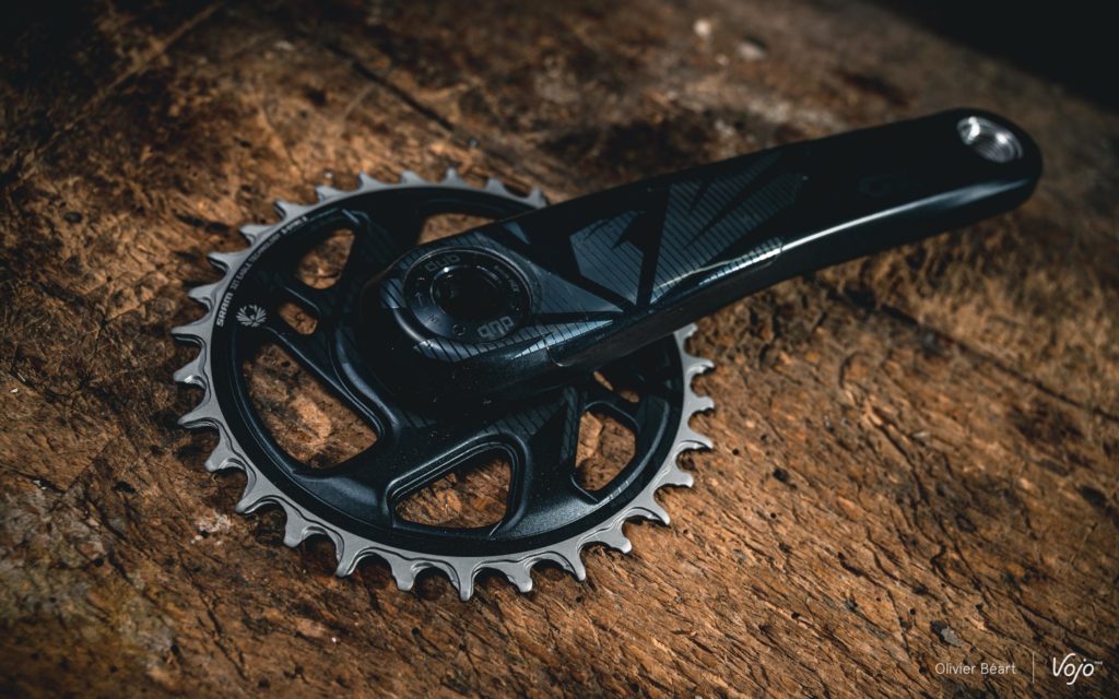 Ce pédalier reçoit aussi un plateau avec une finition revue, puisque les dents sont désormais grises, ce qui devrait permettre de moins percevoir l’inévitable usure, très visible sur des dents noires. Il est bien sûr doté d’un axe alu au format DUB, initié par Sram en vue de permettre une compatibilité avec tous les types de boîtiers de pédaliers et de cadres.