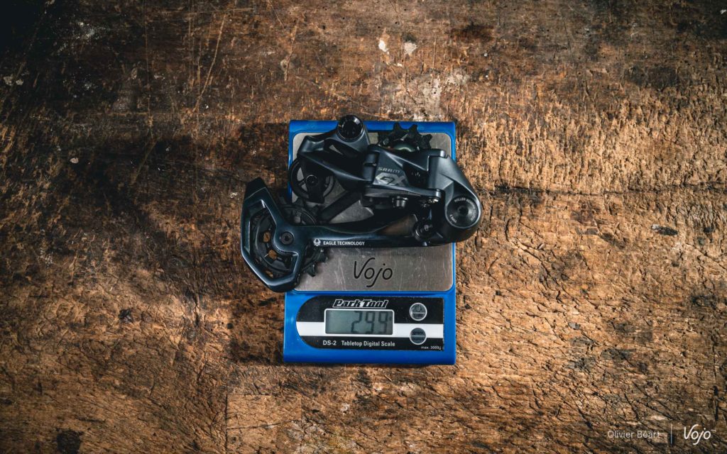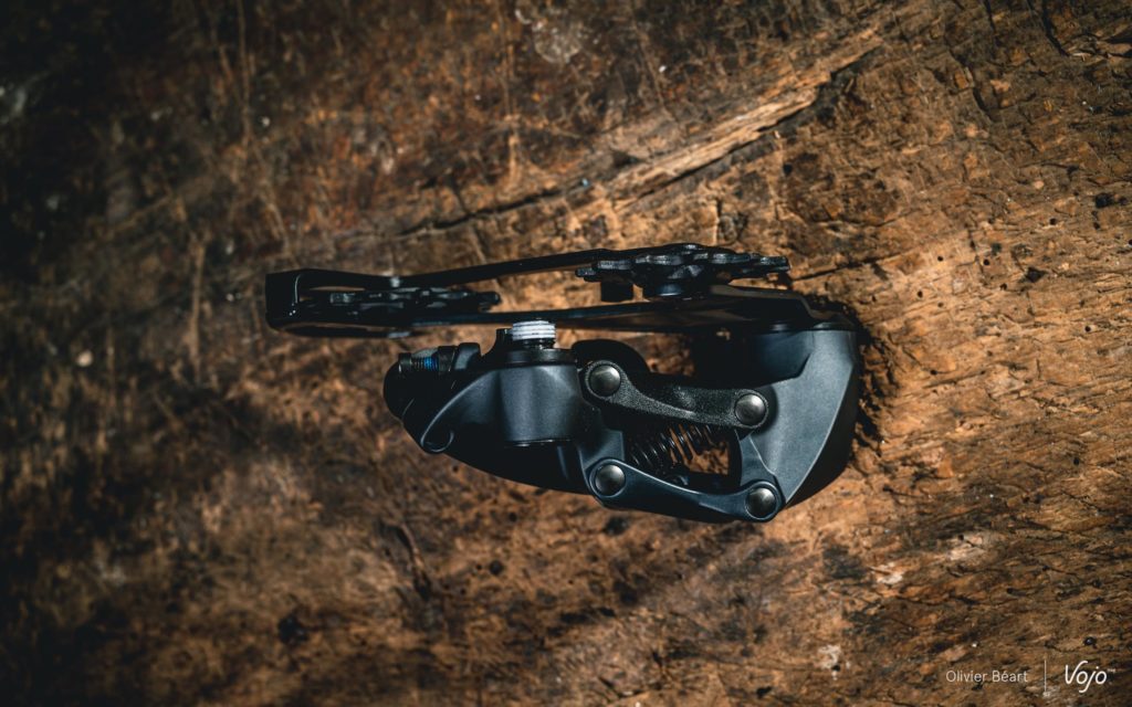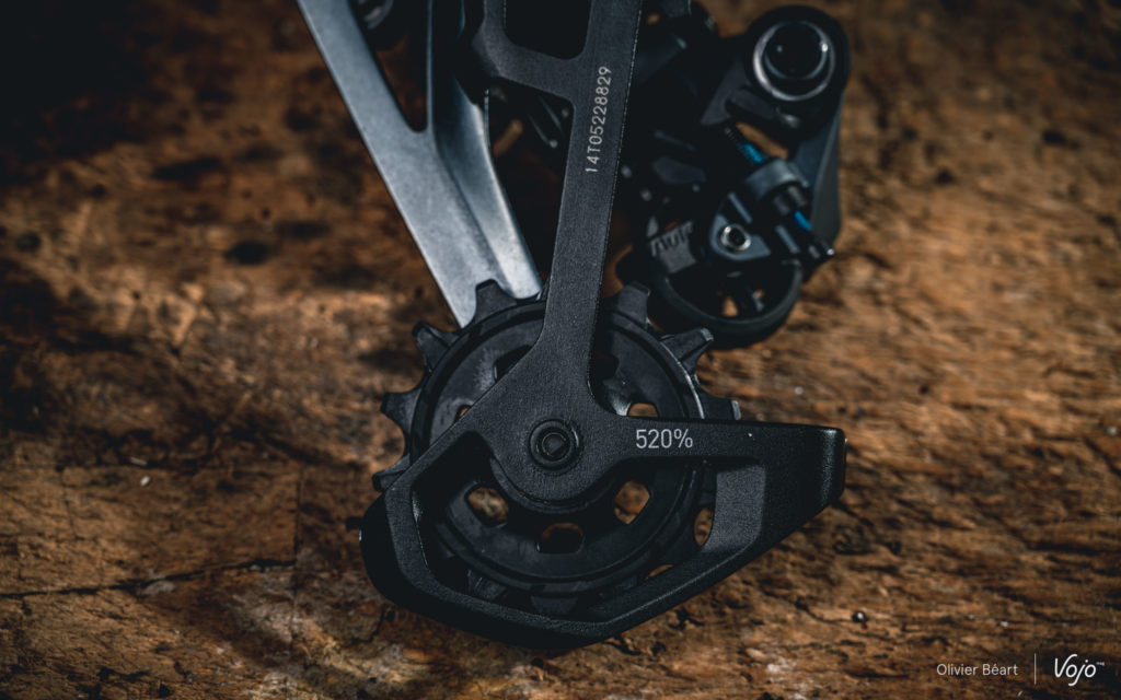 Sur le plan technique, c’est le dérailleur arrière qui a été le plus retravaillé. Le parallélogramme, mais aussi et surtout la chape ont été entièrement revus. Le but : apporter plus de précision dans les changements de rapports en s’inspirant de ce qui se fait sur les XO1 et XX1 Eagle, mais aussi permettre l’utilisation avec la nouvelle cassette 10-52.