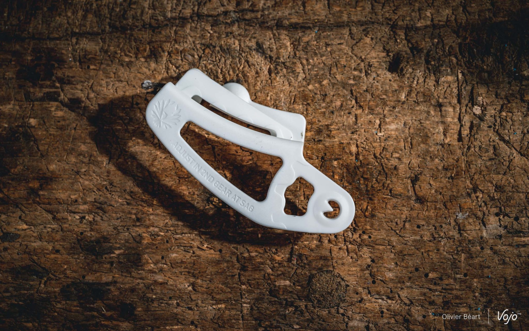 Il ne prend plus place sur le dérailleur, mais il se clipse sur le grand pignon de la cassette, alors que la chaîne est positionnée sur le rapport juste avant. On ajuste ensuite la vis de tension jusqu’à ce que l’axe du galet supérieur du dérailleur soit au centre du petit repère avec flèche. L’opération doit s’effectuer avec la suspension comprimées au SAG (enfoncement statique) ce qui est compréhensible, même si cela complique un peu les choses. Mais pour le reste, ce nouveau petit outil est vraiment beaucoup plus précis et simple d’utilisation que les précédents et la qualité ainsi que la facilité des réglages s’en trouvent améliorés.
