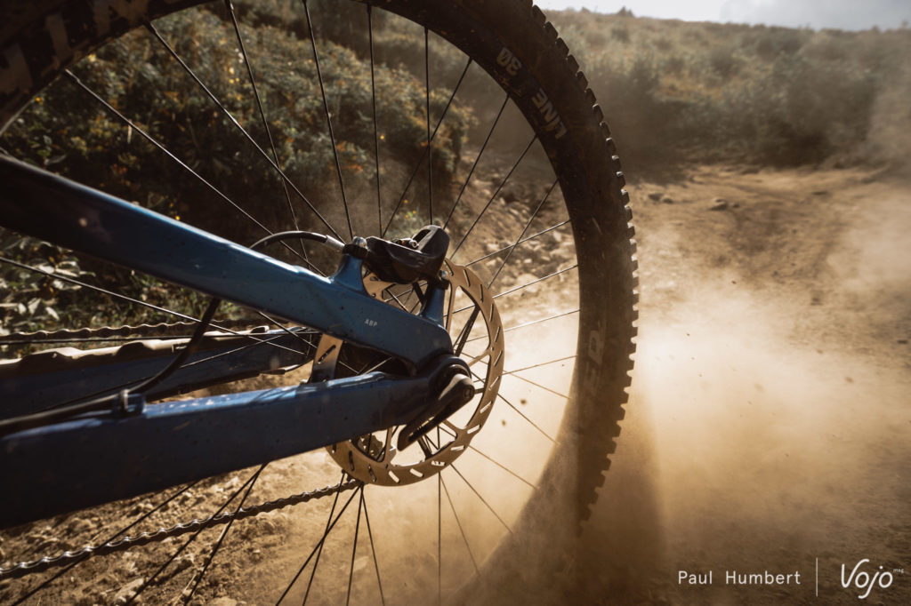Dans la pente, lorsqu’on reste longtemps sur les freins, les HS2 semblent également résister un peu mieux à la montée en chaleur que les Centerline. Sur le passage raide de référence lors de cette prise en main, on gardait encore un peu de mordant en bas de la section avec les nouveaux disques là où les anciens étaient complètement dépassés et avaient besoin d’une pause pour retrouver de l’efficacité. Ce sera toutefois à confirmer à l’occasion de sorties sur d’autres terrains et dans d’autres situations.