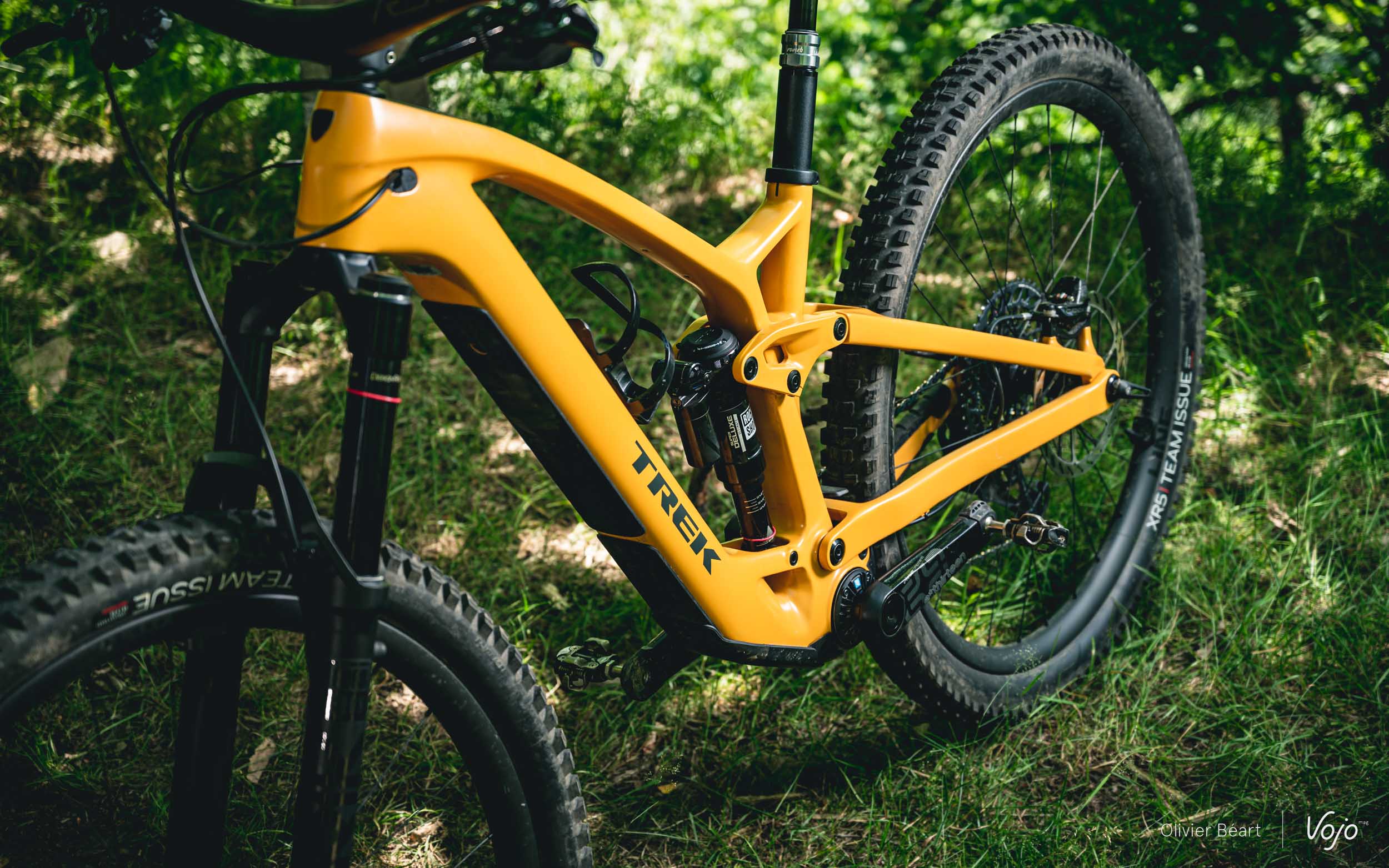 La 9.8 est disponible en deux versions : Sram ou Shimano. La version Sram s’échange contre 10 999 € et est équipée en GX Eagle AXS, tandis qu’un groupe Deore XT est utilisé pour la version Shimano à 9 499 €. Ils sont chacun équipés d’une fourche RockShox Lyrik Select+ et d’un amortisseur Super Deluxe Select+. En outre, les roues sont désormais également en carbone, avec des Bontrager Line Elite 30, et le combo guidon/tige Bontrager en une seule pièce fait son apparition. Noir, jaune ou bleu ? Le choix vous appartient.