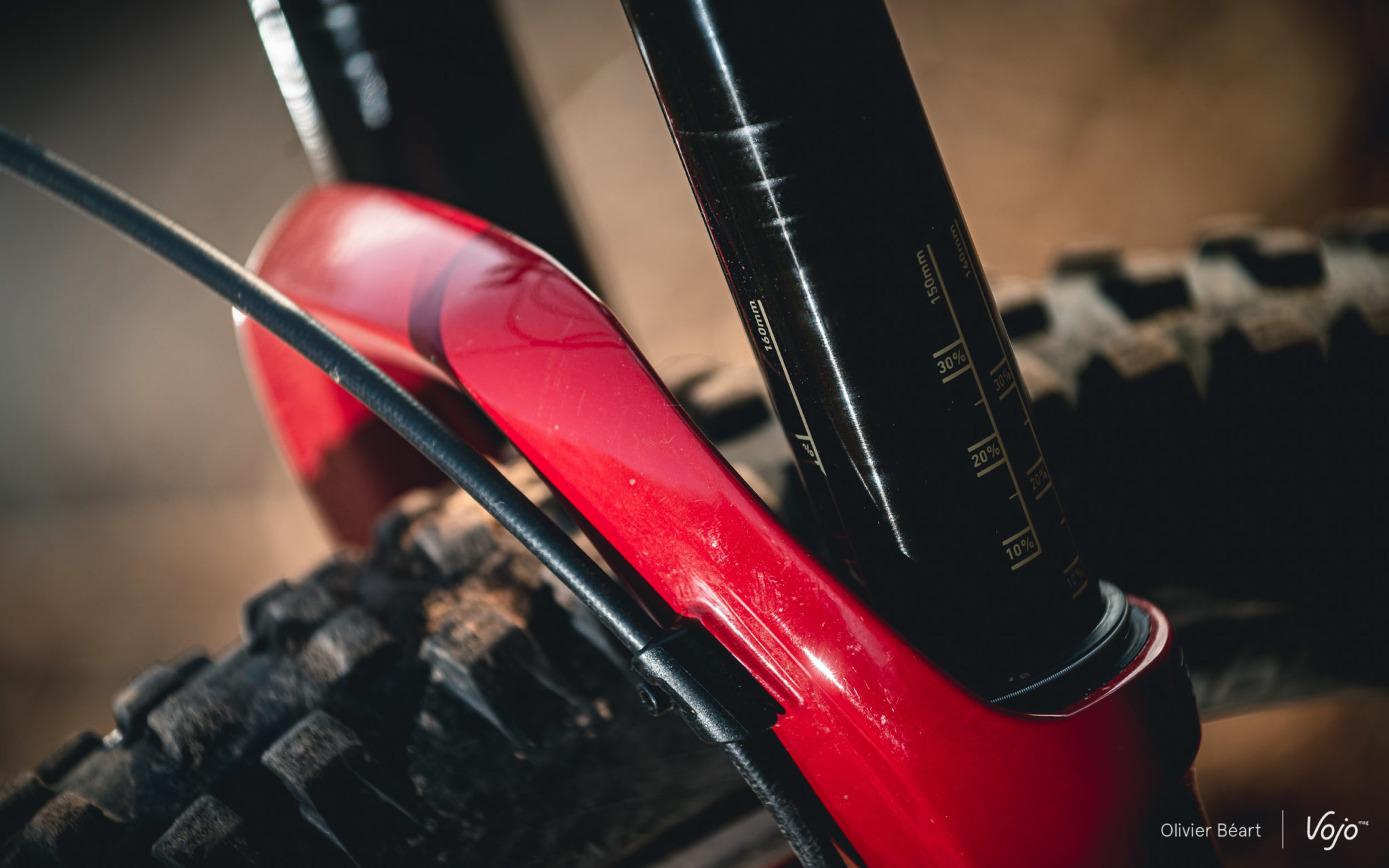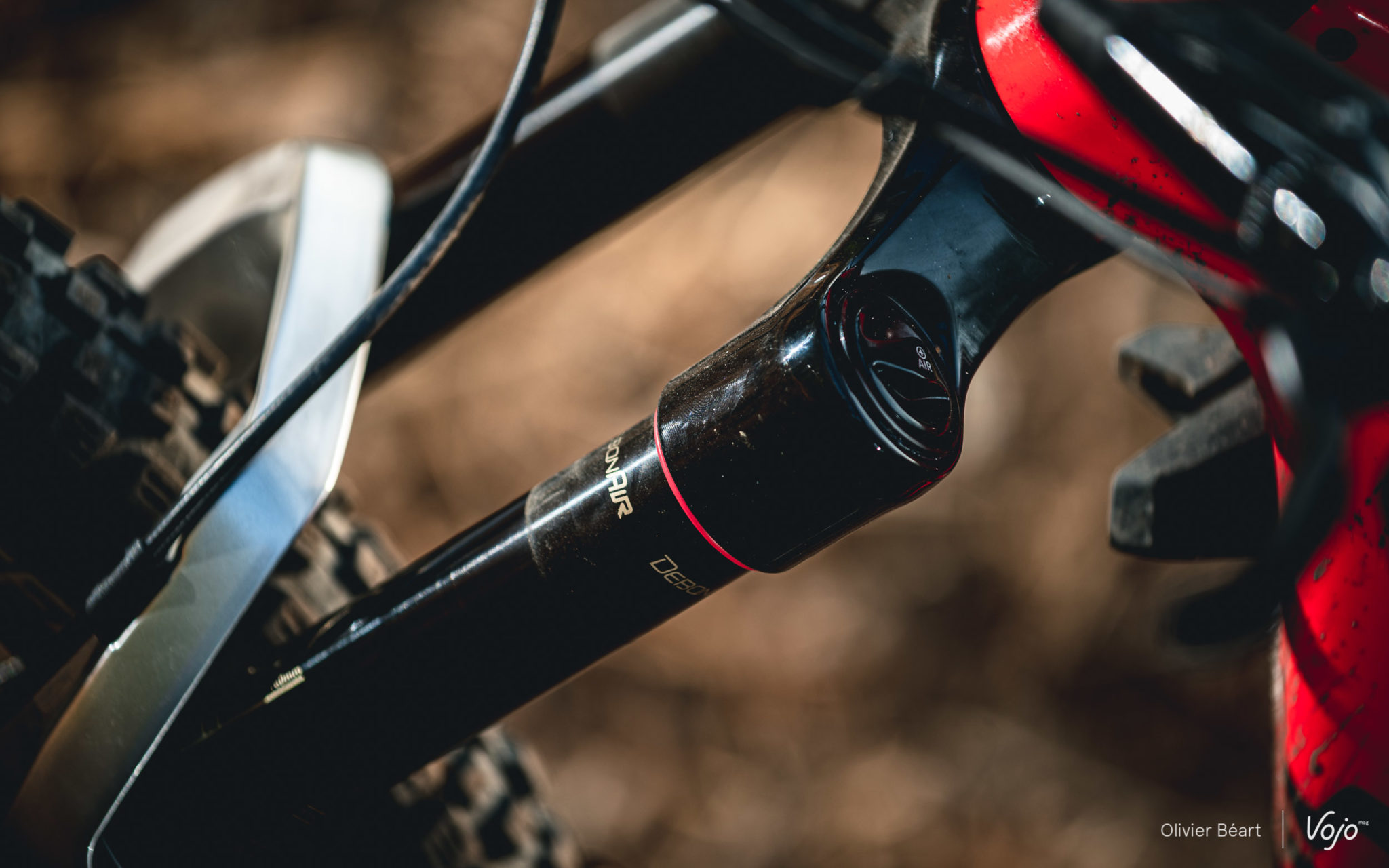 On parle ici du début et de la mi-course de la fourche, et de cette sensation de garder le poste de pilotage à une hauteur confortable quand on est dans la pente, et de ne pas avoir la sensation d’avoir une fourche qui rentre trop vite dans son débattement. Soyons clairs, ce n’est pas quelque chose qui nous a vraiment dérangés sur les précédentes générations, mais nous comprenons cette remarque et c’est vrai que c’est un point qui pouvait être amélioré, notamment par rapport à Fox qui faisait traditionnellement mieux que RockShox sur ce point.
