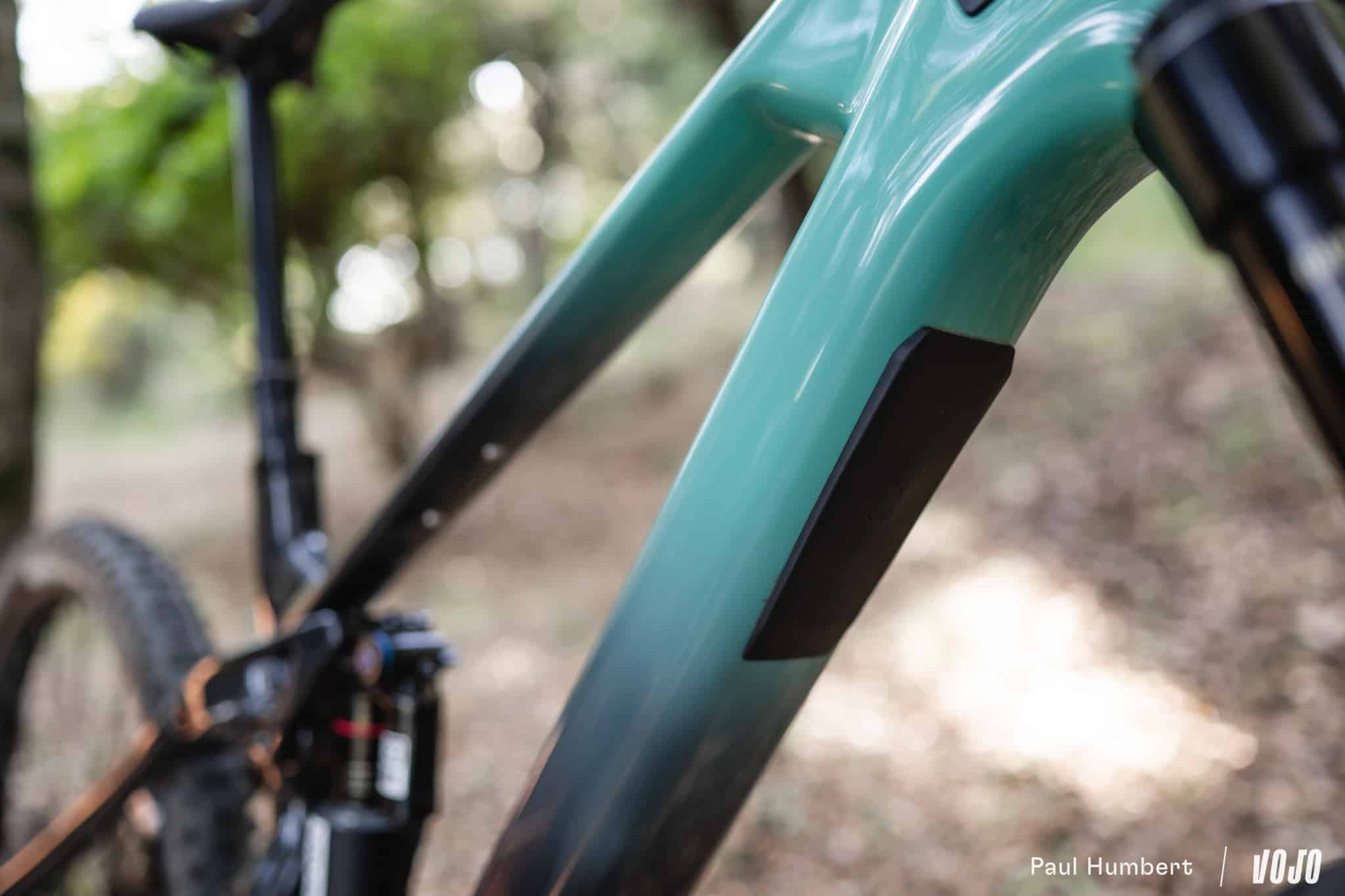 La batterie de 800 Wh ne semble pas déséquilibrer l’avant du vélo, et même si on se dit que dans cette formule à gros débattement, qui peut le plus peut le moins, et qu’une batterie de 600 Wh pourrait suffire, la recette semble assez aboutie.