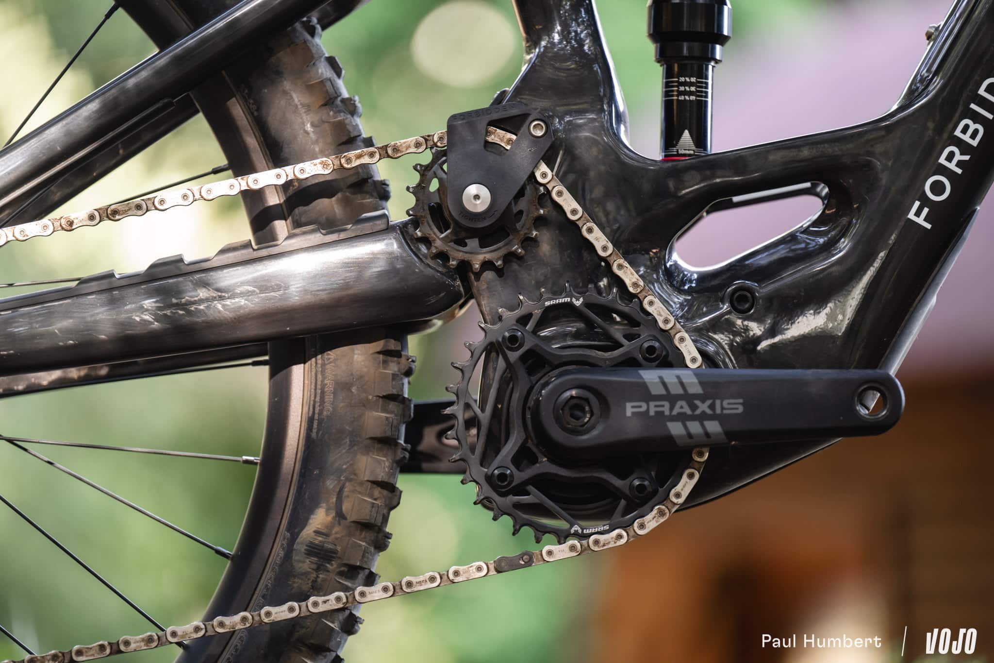 Le choix des manivelles fait également partie de la géométrie de ce vélo, et Forbidden a choisi des modèles de 150 mm de long. Très courts, donc, mais qui offrent beaucoup de dégagement au sol.