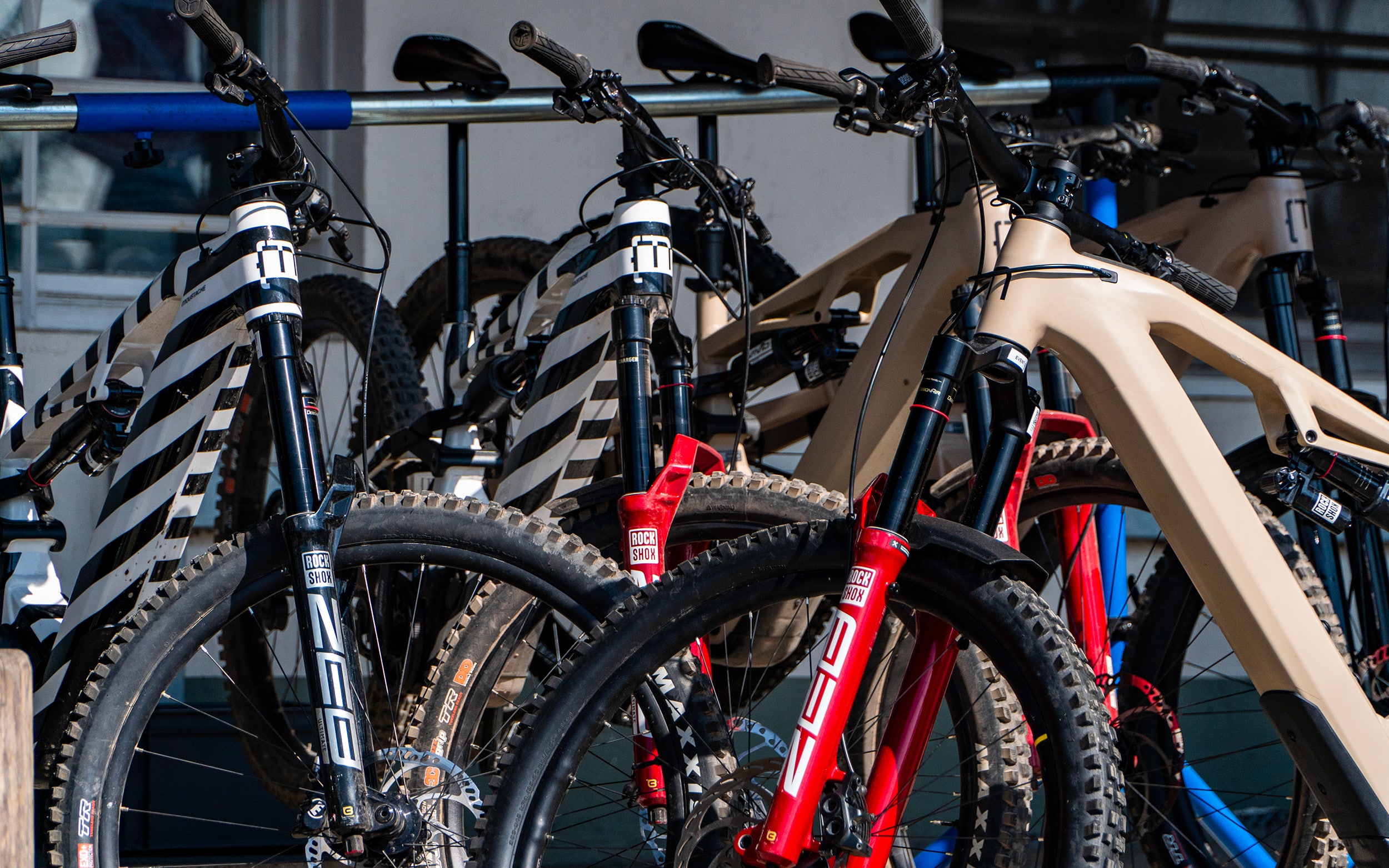 Le Clutch développe 160 mm de débattement à la roue arrière et est équipé d’une fourche de 170 mm, une jolie Rockshox ZEB Ultimate sur cette version prototype de test, et qu’on retrouvera aussi sur certains des modèles de série. Habituellement, Moustache travaille plutôt avec Fox, mais après plusieurs tests, il s’est avéré que l’amortisseur RockShox Vivid Air était le « perfect match » pour le Clutch. Et c’est assez logiquement que la marque a assorti la fourche à l’amortisseur.