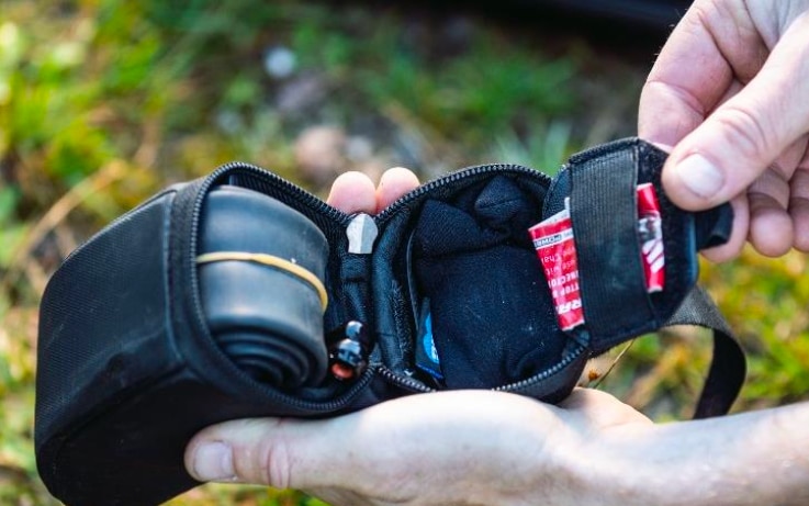 Enfin, Moustache propose également un multi-outils installé dans le pivot de fourche, ainsi qu’une petite sacoche placée à l’extrémité de la batterie. De quoi ranger du petit matériel d’urgence.