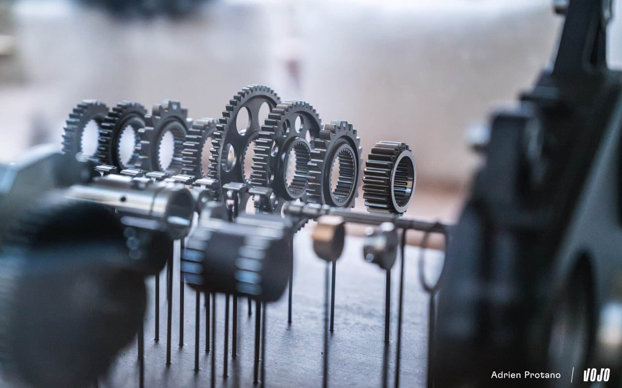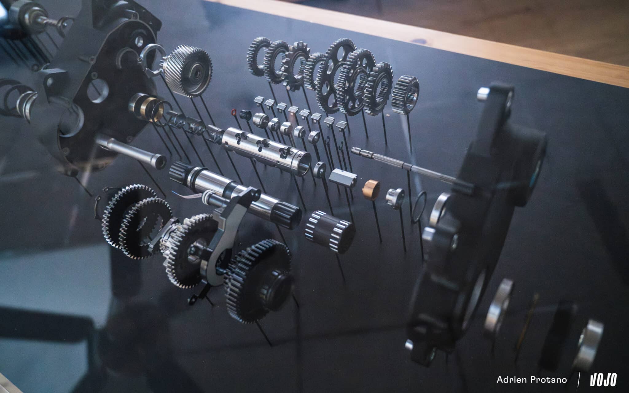 Coeur du sujet, le Moustache Clutch est mis en vie par le Pinion MGU, pour Motor Gearbox Unit. On remarque de suite la curieuse forme dans laquelle Moustache a placé son moteur, de manière à placer le centre de gravité le plus bas possible.