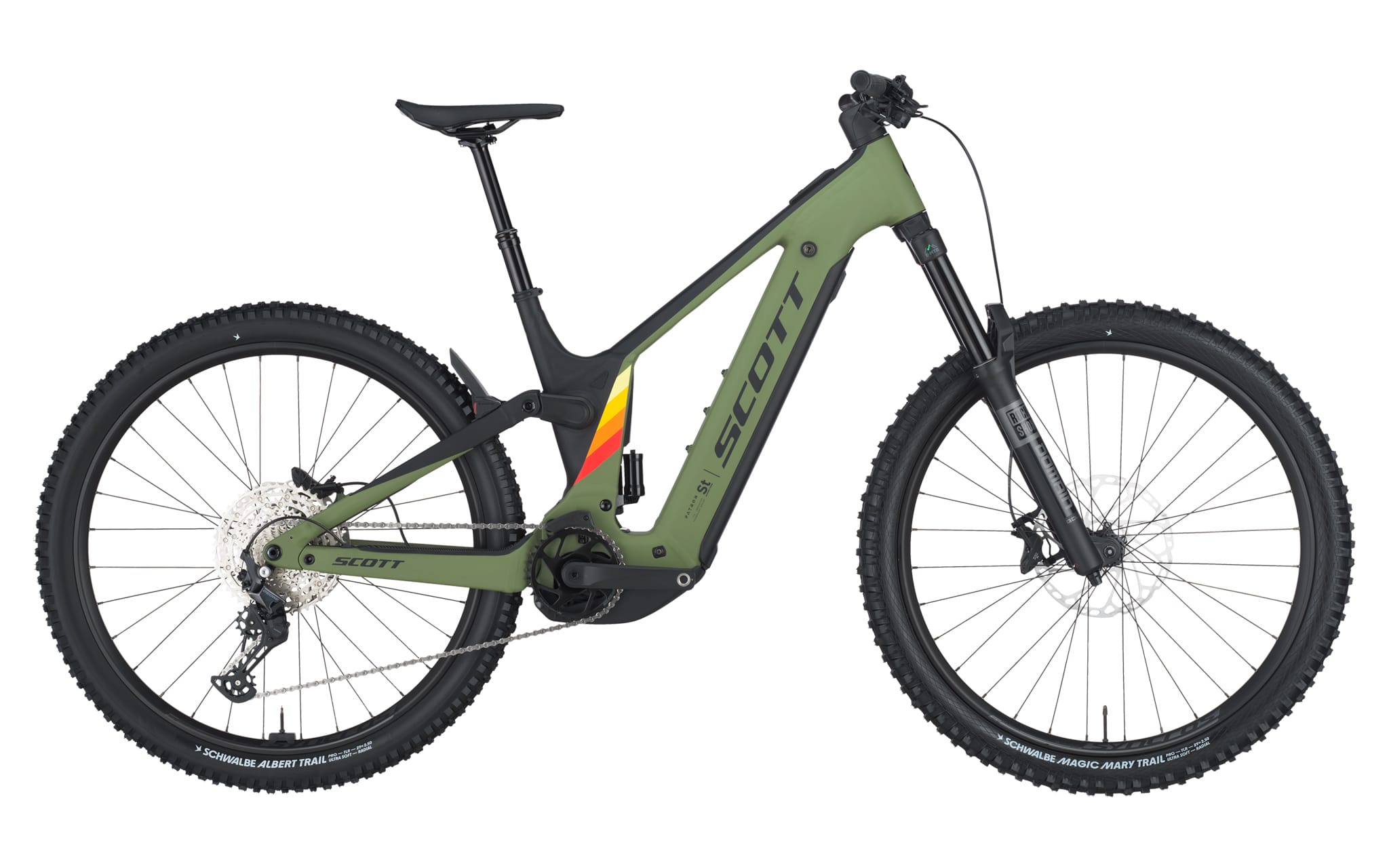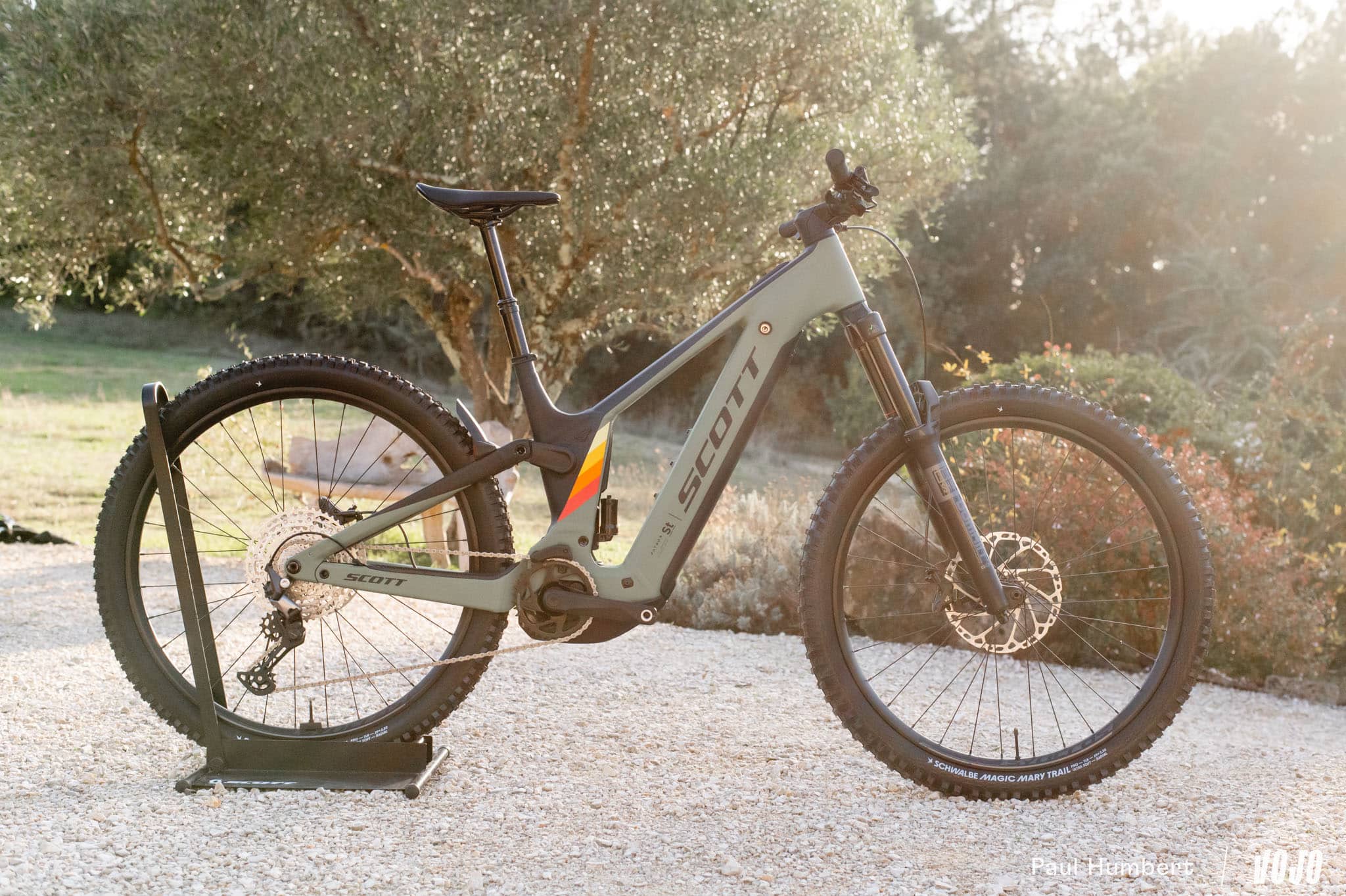 - Scott Patron ST 900 Tuned : cadre carbone, fourche Fox 38 Factory gripX2, amortisseur Fox Float Nude foctory evol, transmission Sram GX Eagle AXS, freins Magura MT7, ABS, pneus Schwalbe Magic Mary/Albert 2.5. Poids : 24,3 kg. Prix : 10999 €.