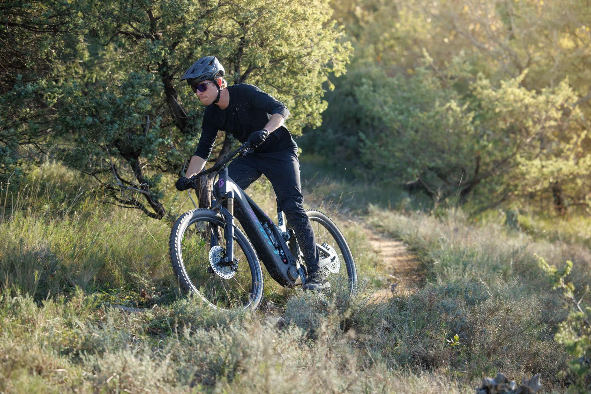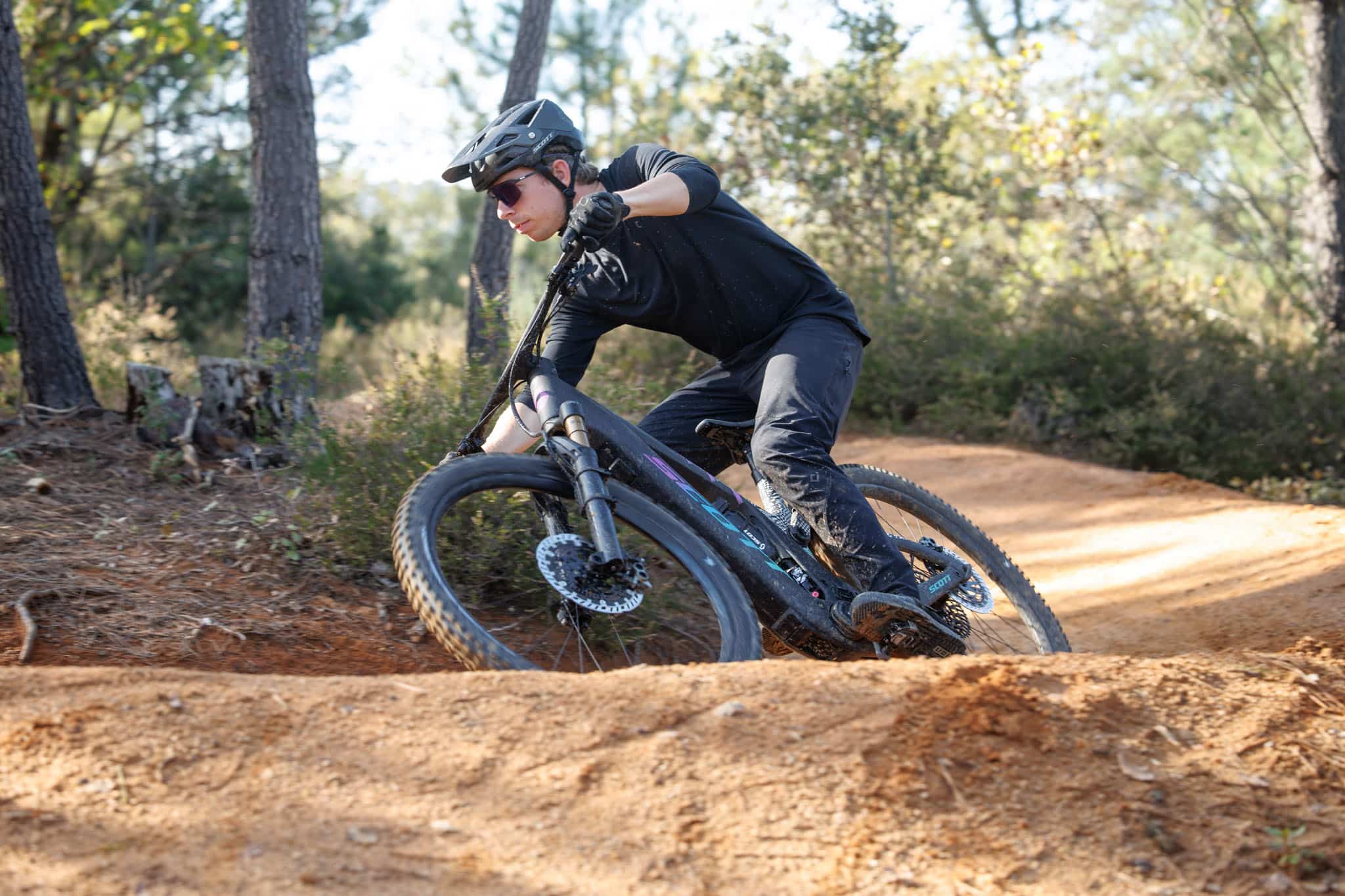 En descente, le début de course des suspensions est souple et assure une excellente lecture de terrain. Le choix des carcasses radiales sur les pneus Schwalbe de ce modèle haut de gamme est un gros plus en VTTAE. Nous avions déjà découvert la cartouche Grip X2 proposée par Fox sur d’autres vélos et elle apporte toujours une belle plateforme une fois les premiers centimètres de débattement utilisés. À l’arrière, le fonctionnement de la suspension réplique ce comportement et on retrouve un vélo très équilibré.