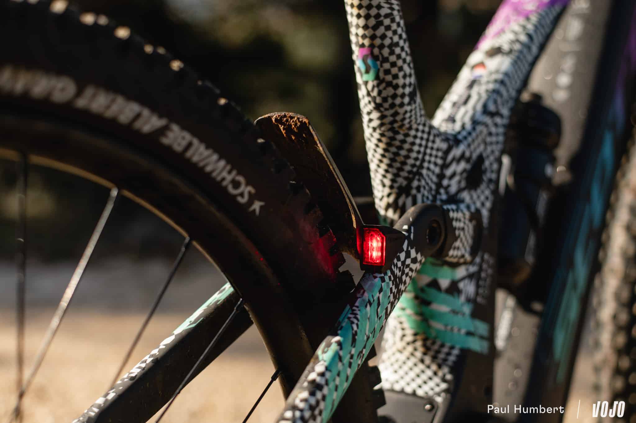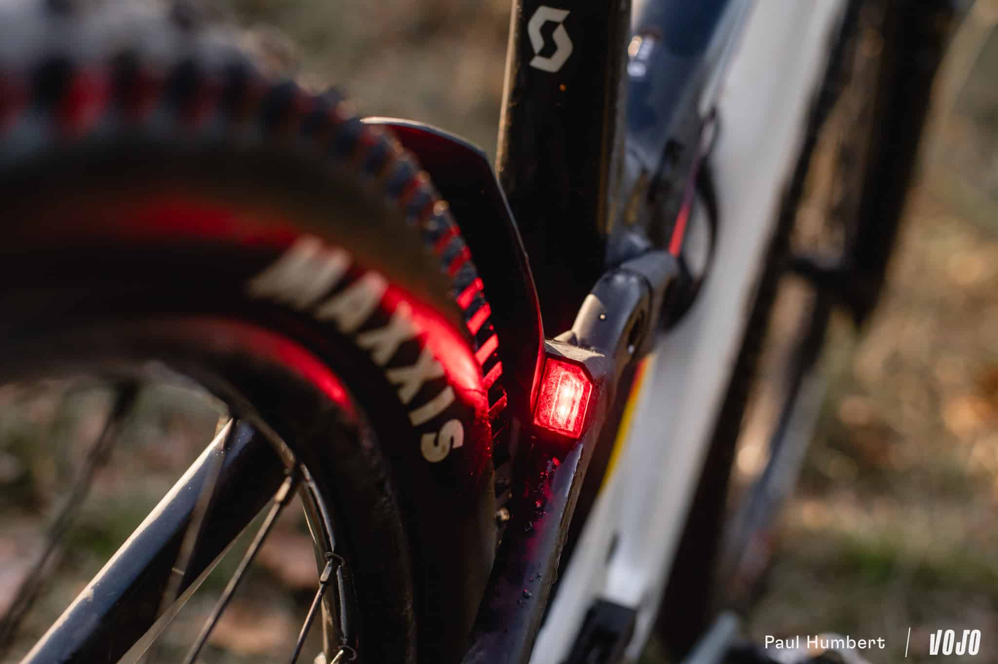 On retrouve toujours les petits lumières Led à l’arrière du vélo, ainsi qu’un garde-boue. C’est déstabilisant de retrouver ça sur un vélo sportif, mais c’est un petit plus en utilisation urbaine ou sur la route du retour après une sortie VTT. Dans tous les cas, ce n’est jamais pénalisant.