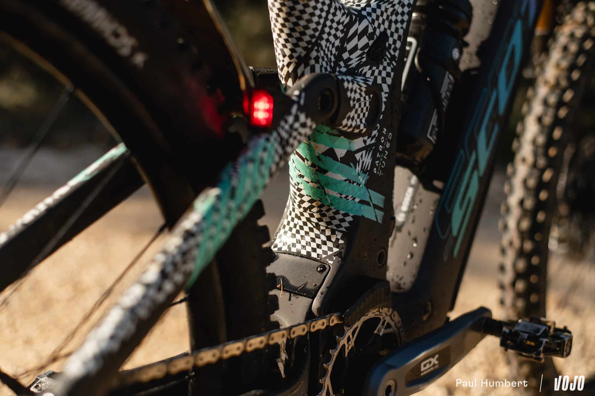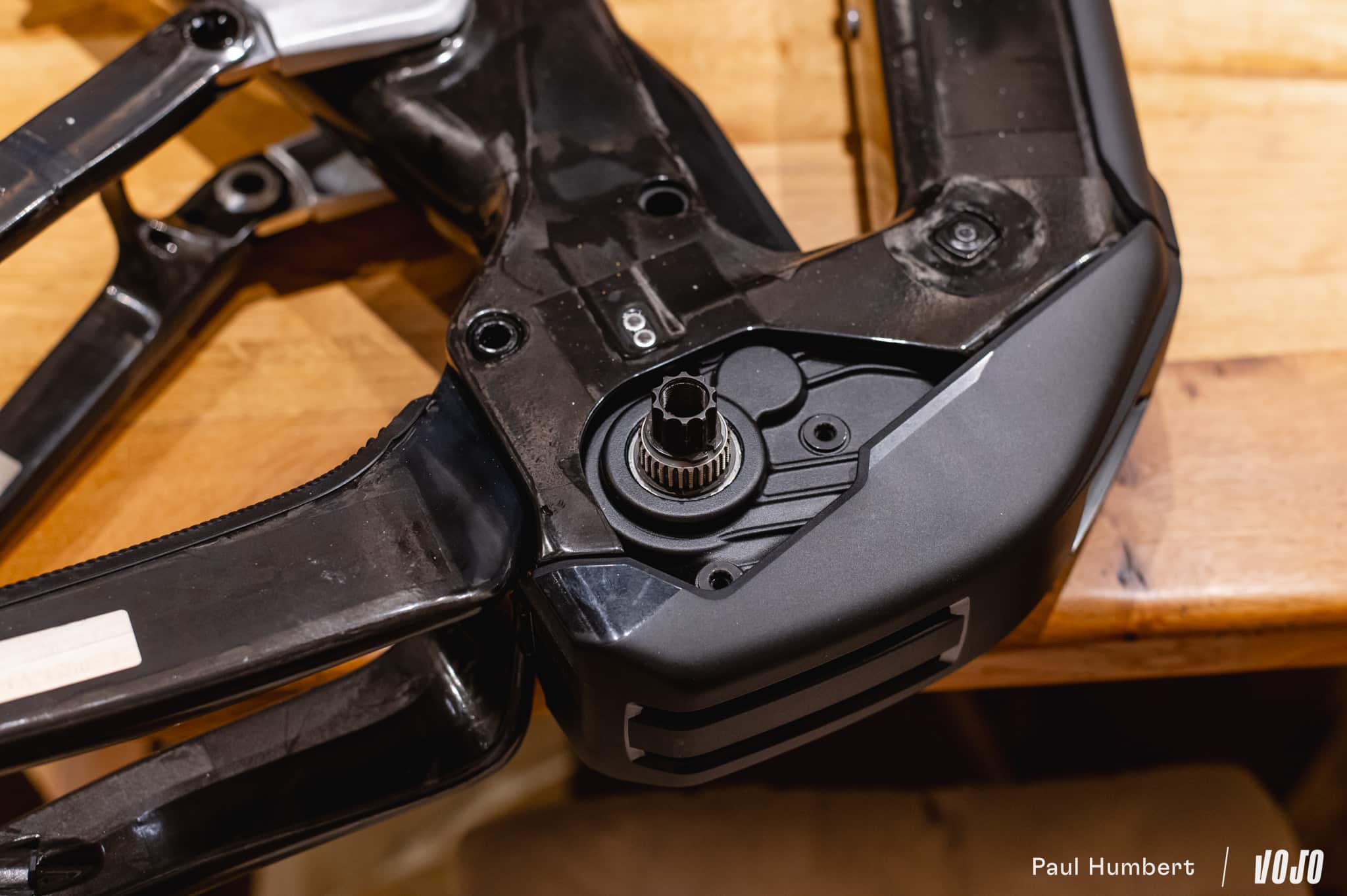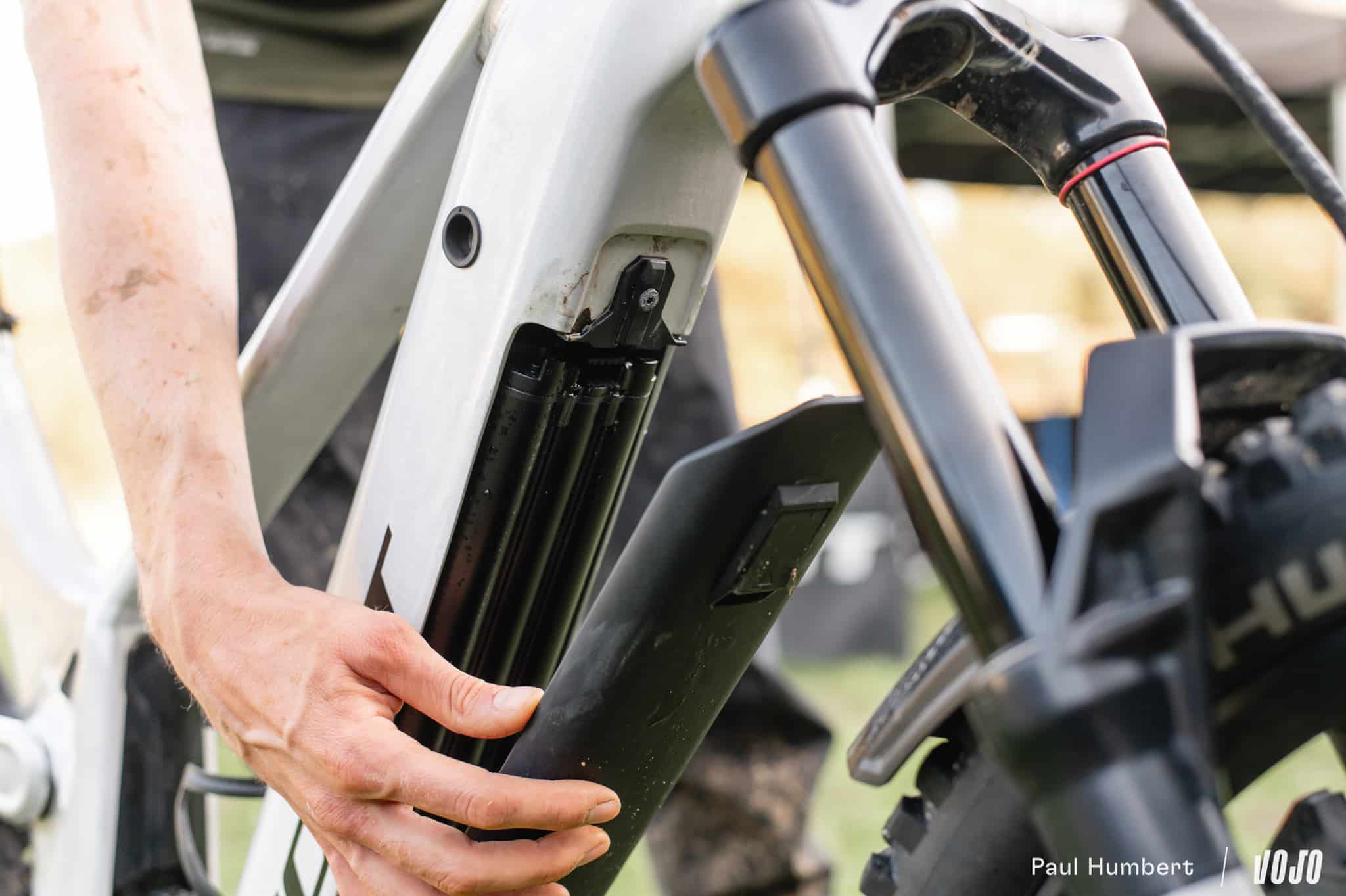 Le moteur retrouve également une position plus conventionnelle, à plat, permise par une batterie plus courte que par le passé. La batterie est accessible « par l’extérieur », avec une ouverture sous le tube inférieur et un « range extender » de 250 Wh supplémentaire peut être utilisé sur toutes les tailles de cadre.