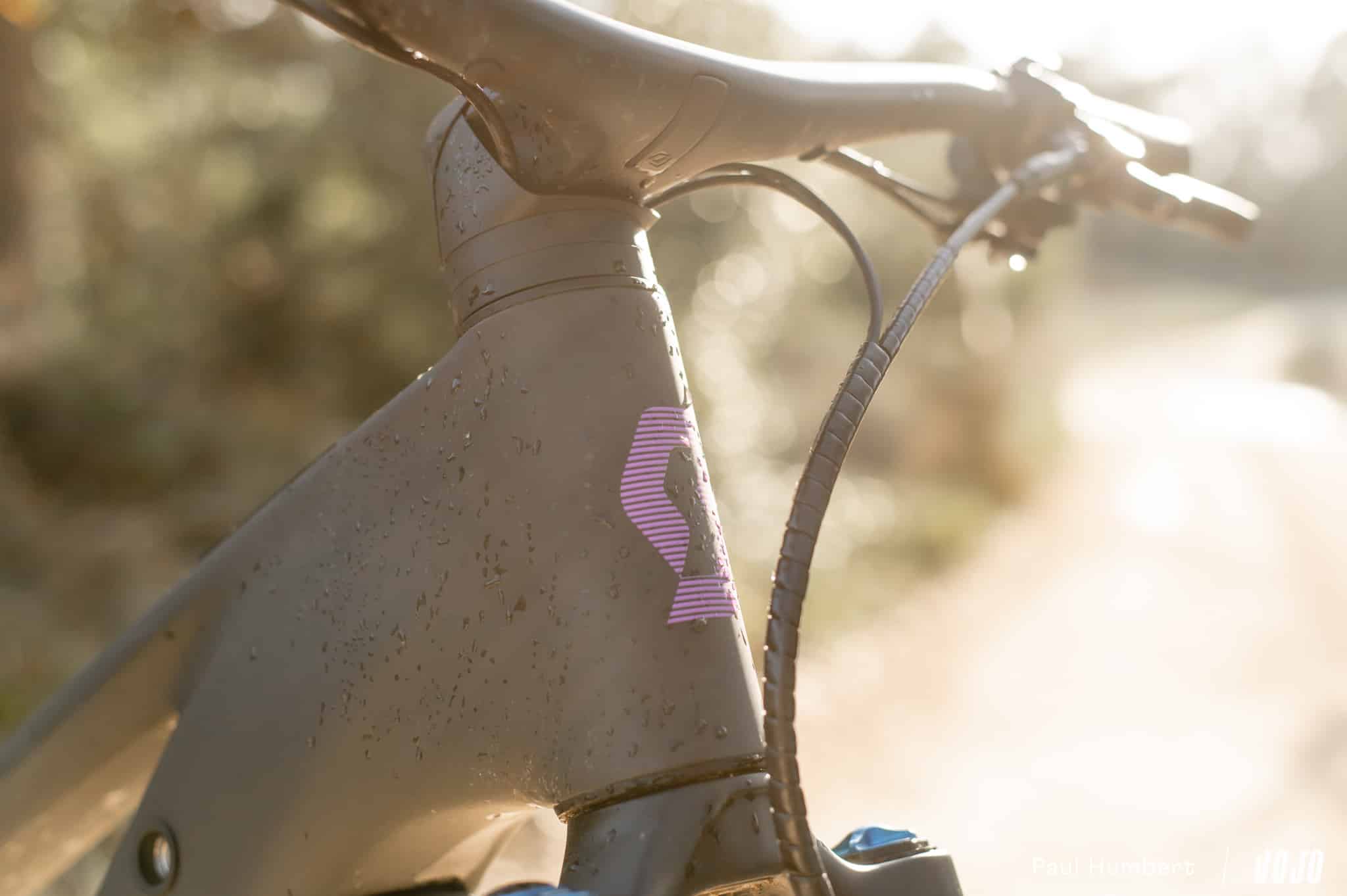 Ce qu’on retient, c’est le choix d’une batterie de 800 Wh dans le catalogue Bosch. Scott l’a sélectionnée en écoutant ses revendeurs faisant une demande de « toujours plus » d’autonomie, et le modèle de batterie proposé par le motoriste change de forme. Elle est plus carrée, mais aussi bien plus courte que la précédente 750 Wh, et permet un meilleur centrage des masses.
