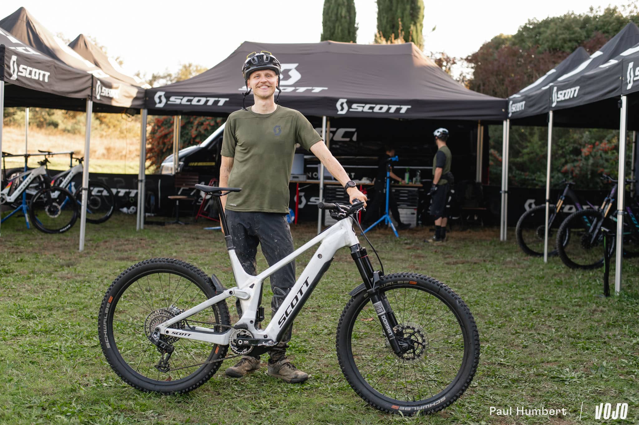 Direction l’Ardèche pour découvrir le Scott Patron ST 900 Tuned. La marque a fait le choix de nous faire essayer le temps de quelques heures le modèle haut de gamme de la série ST à grand débattement. On est bien accompagnés par l’équipe de la marque qui nous distille quelques informations sur le développement du vélo pendant la sortie, et un certain Jérôme Clementz est à l’effectif.
