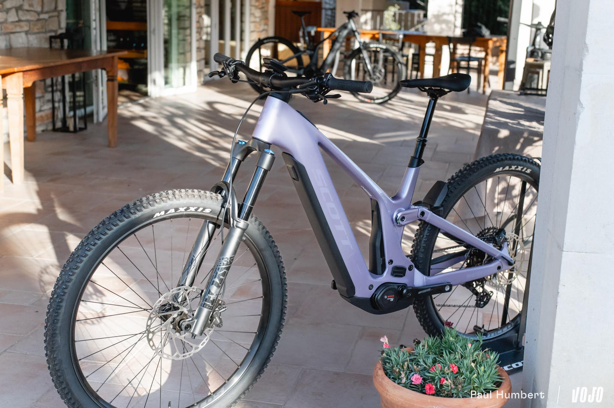 - Scott Patron 910 (gris ou mauve) : cadre carbone / alu, fourche Fox 36 Rythm, Amortisseur Fox Float Evol, transmission Sram S1000 Eagle AXS, freins Shimano Deore M6120, pneus Maxxis Forecaster 2.6. Poids : 24,3 kg. Prix 7699 €